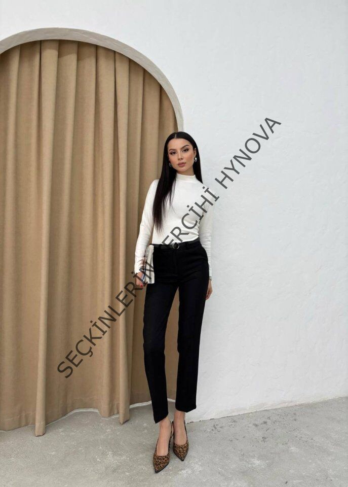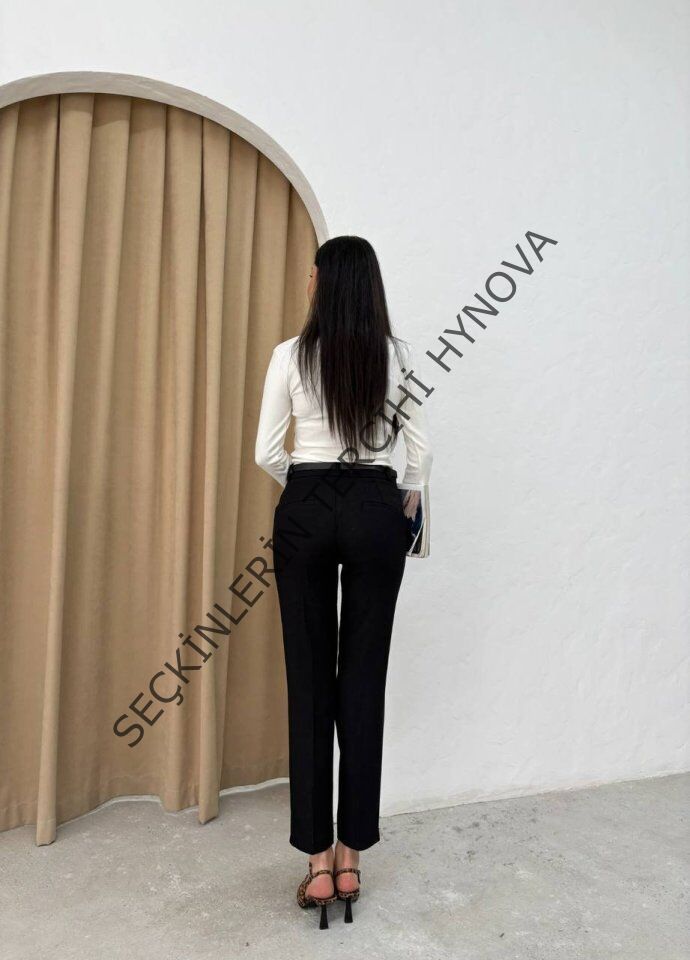 Kadın Yüksek Bel Dar Paça Kemer Dahil Kumaş Pantolon