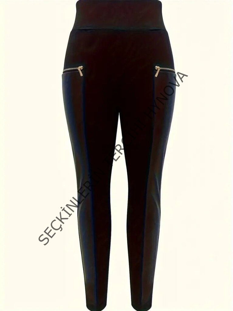 Kadın Yüksek Bel Deri Detaylı Fermuarlı Dalgıç Tayt