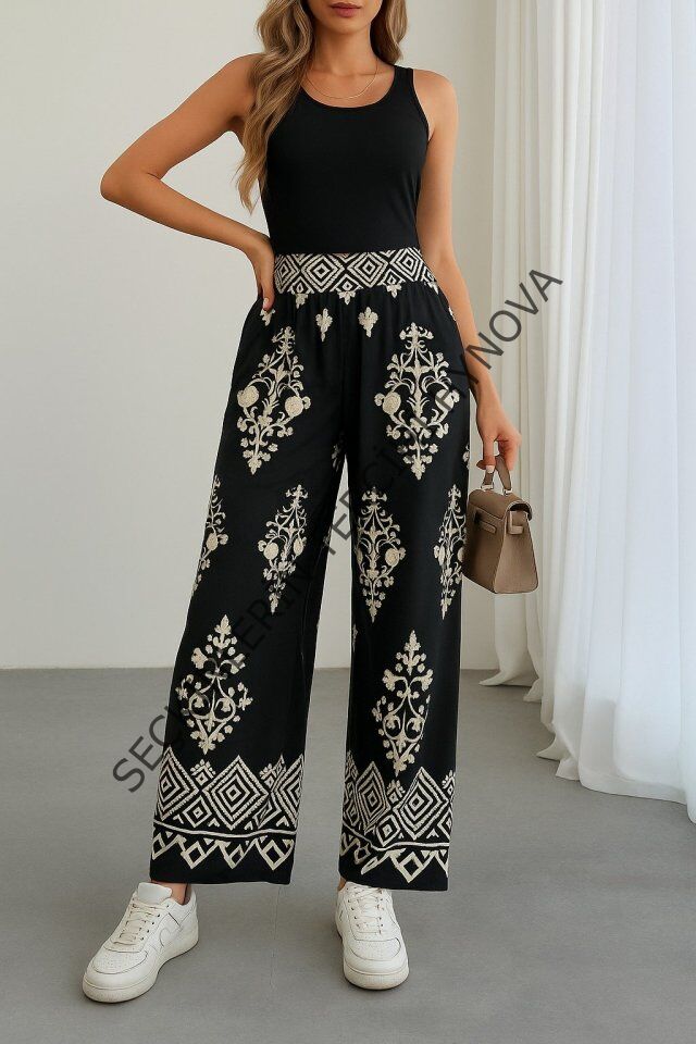 Kadın Yüksek Bel Desenli Lastikli Süprem Pantolon