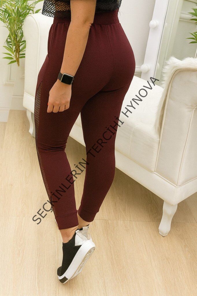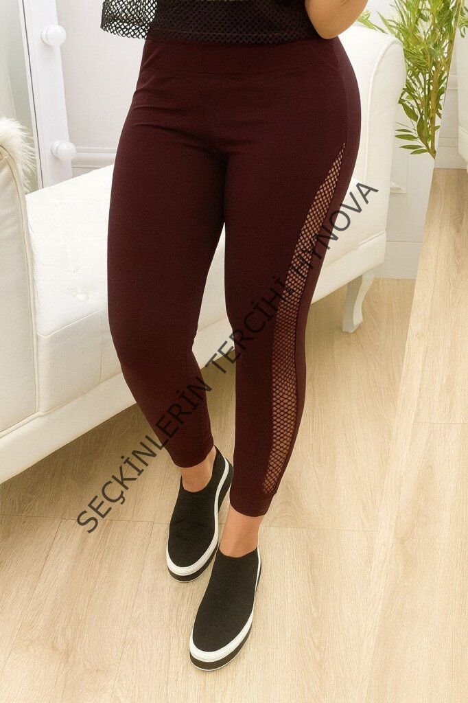 Kadın Yüksek Bel File Detaylı Dar Kesim Viskon Iki Iplik Pantolon