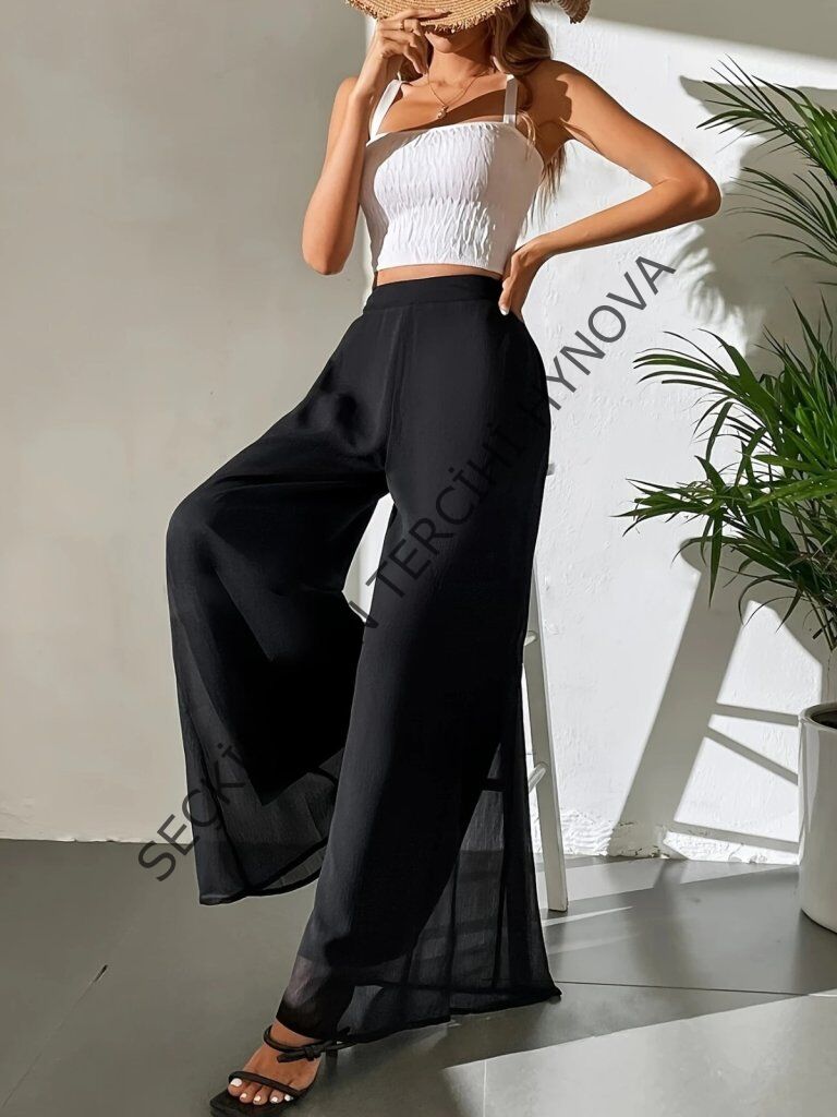 Kadın Yüksek Bel Geniş Paçalı şifon Pantolon