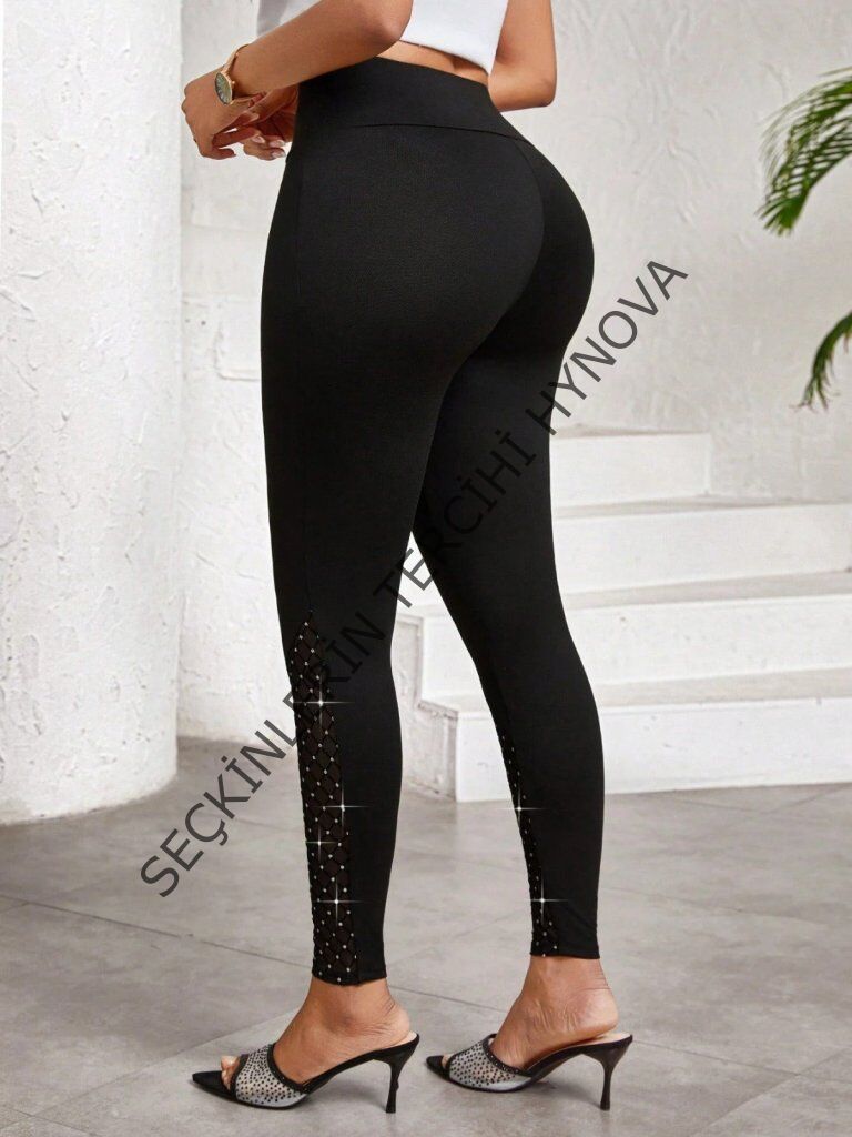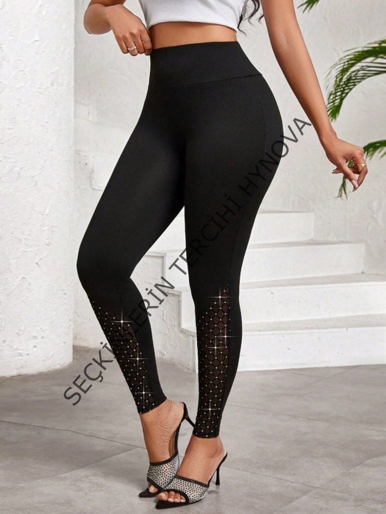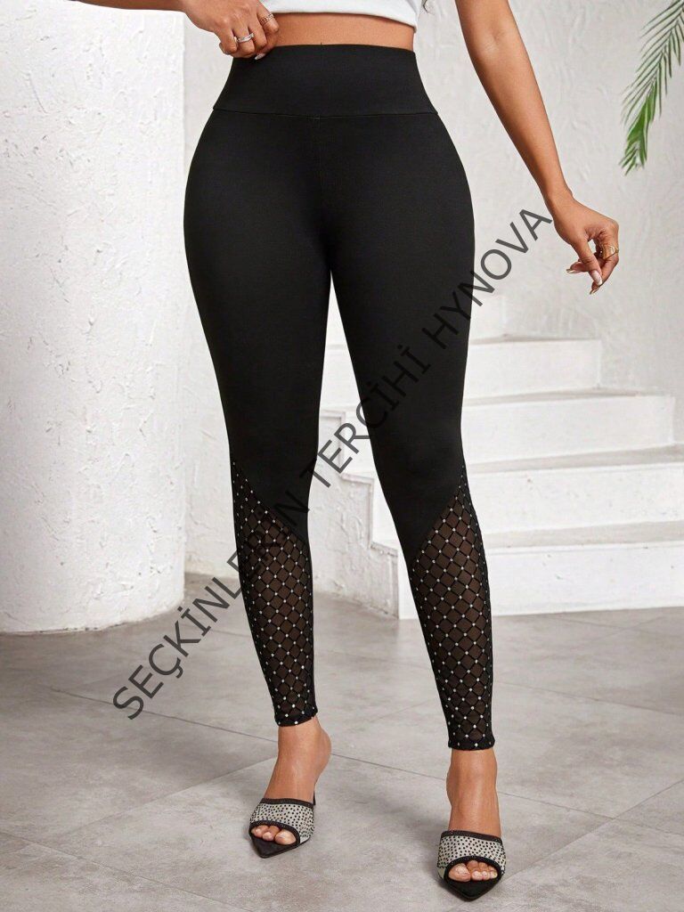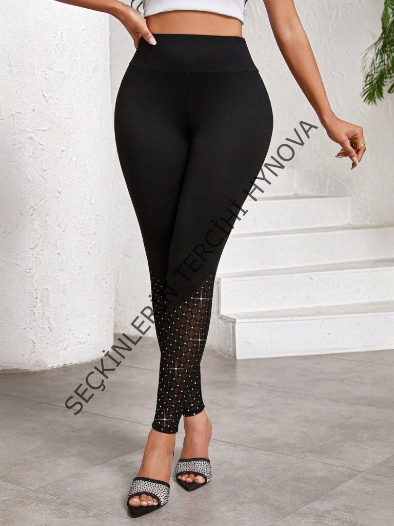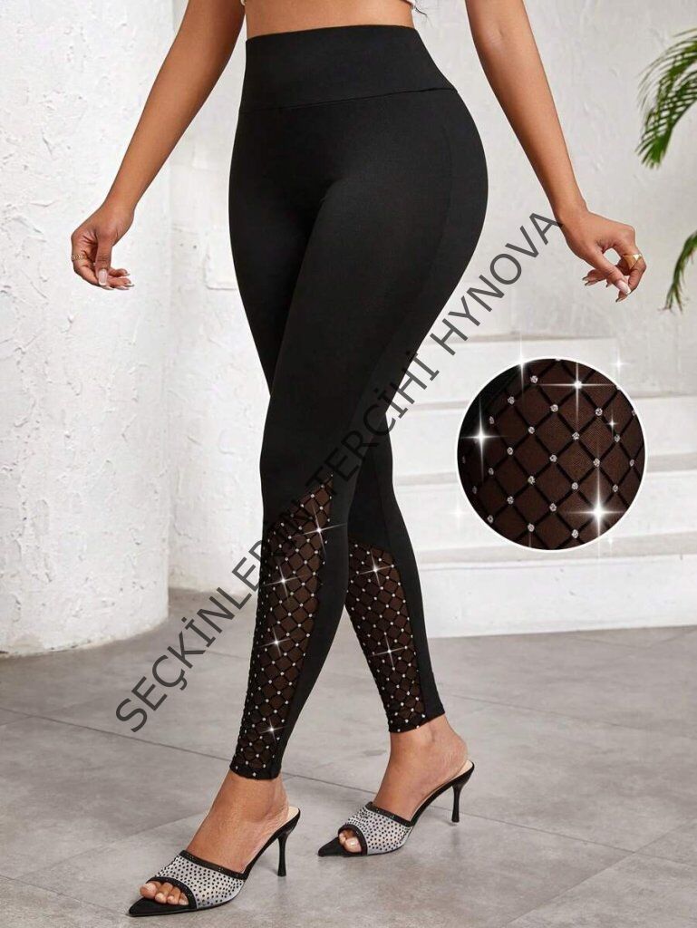 Kadın Yüksek Bel ışıltılı Tül Geometrik Detaylı Dalgıç Tayt