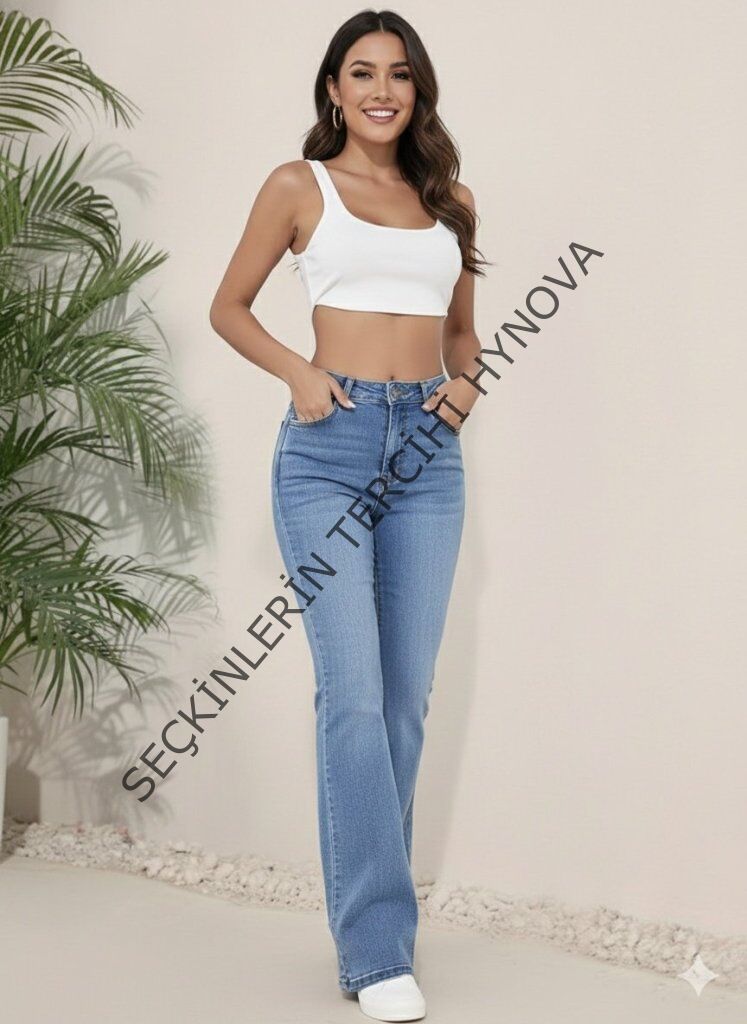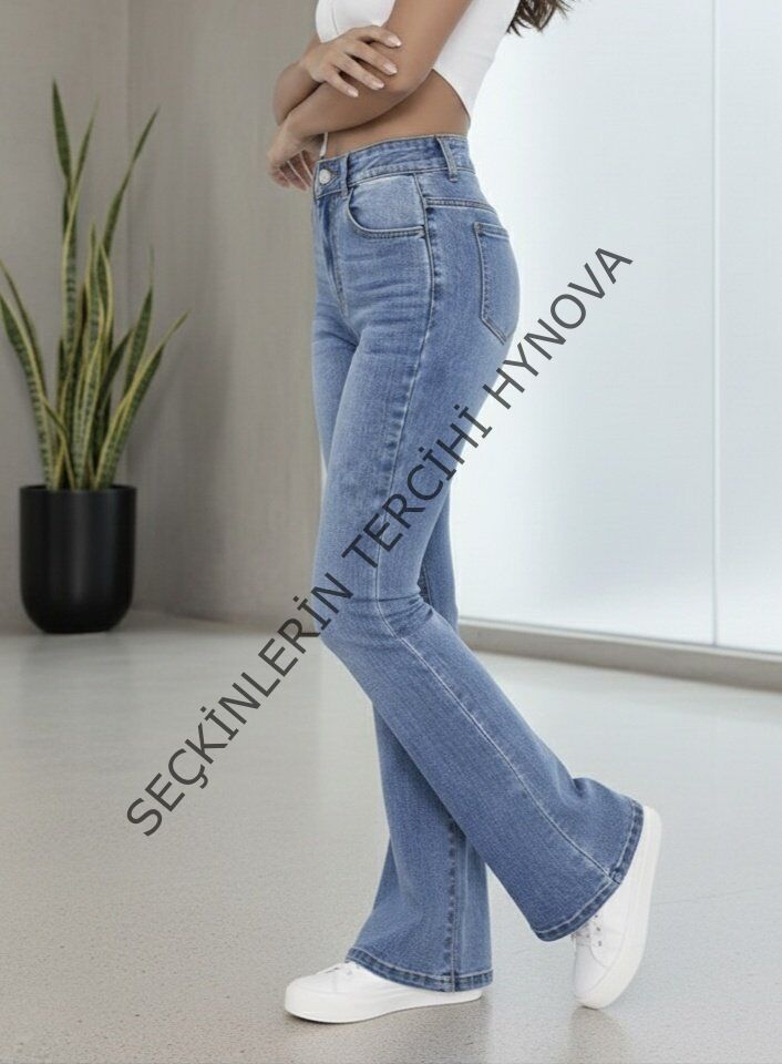 Kadın Yüksek Bel İspanyol Paça Kot Pantolon
