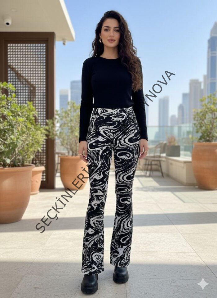 Kadın Yüksek Bel Krep Kumaş Bol Paça Pantolon