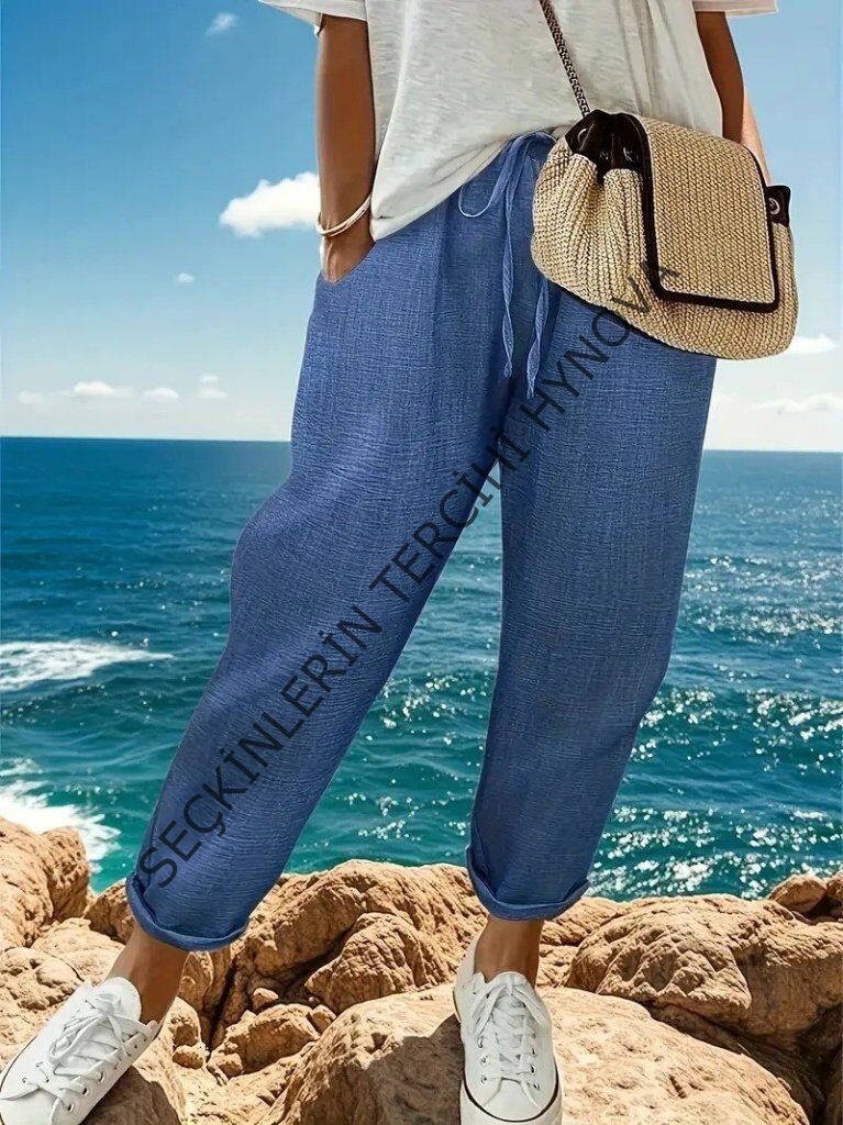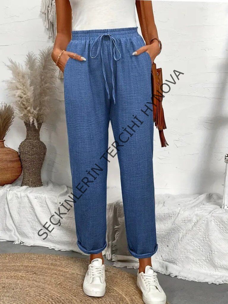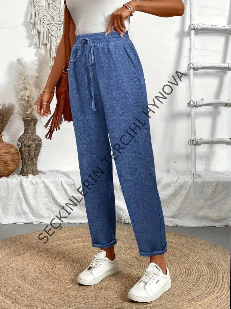Kadın Yüksek Bel Lastikli Belde Bağcık Detaylı Aerobin Pantolon