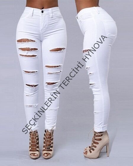 Kadın Yüksek Bel Lazer Yırtık Desenli Kot Pantolon