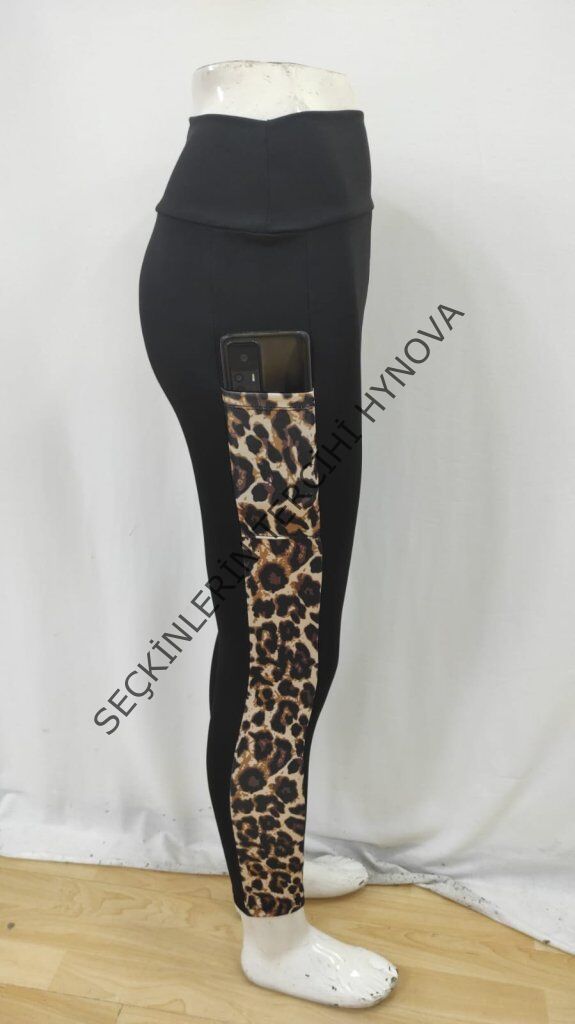 Kadın Yüksek Bel Leopar Desen Ve Cep Detaylı Dalgıç Tayt