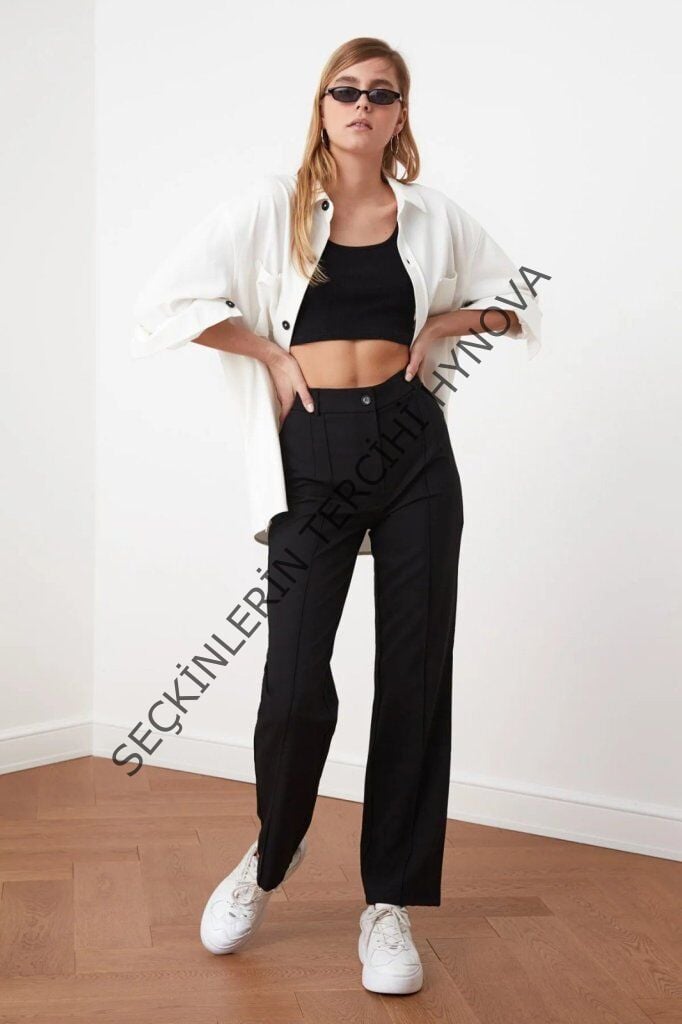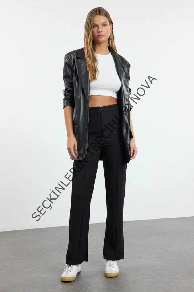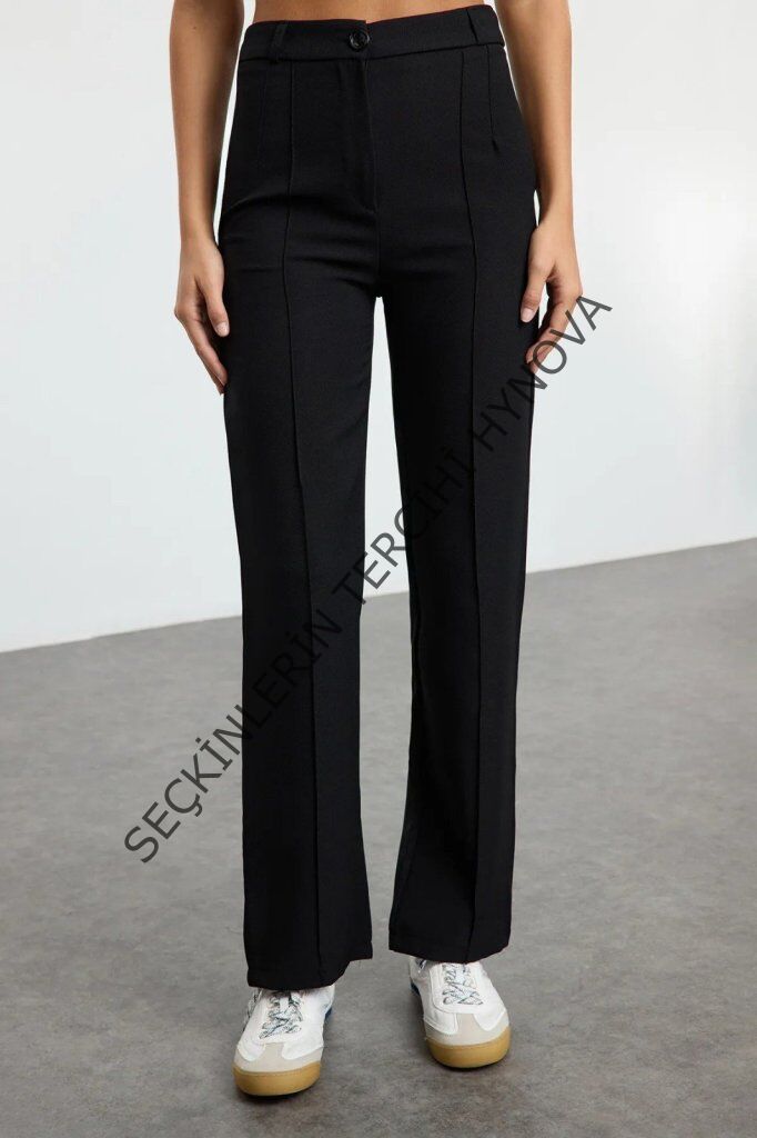 Kadın Yüksek Bel Nervurlu Ithal Krep Pantolon