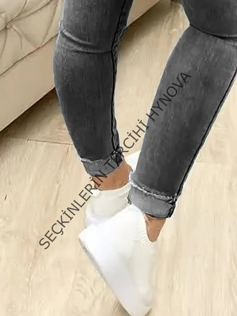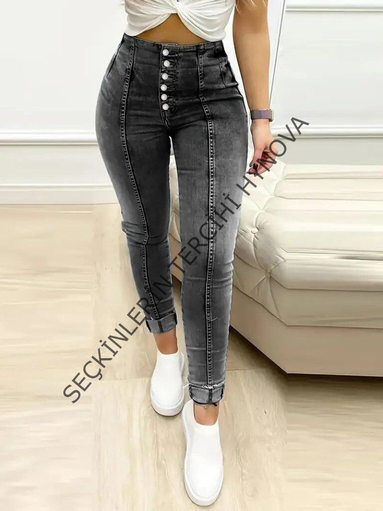 Kadın Yüksek Bel önden Düğmeli Jean Pantolon