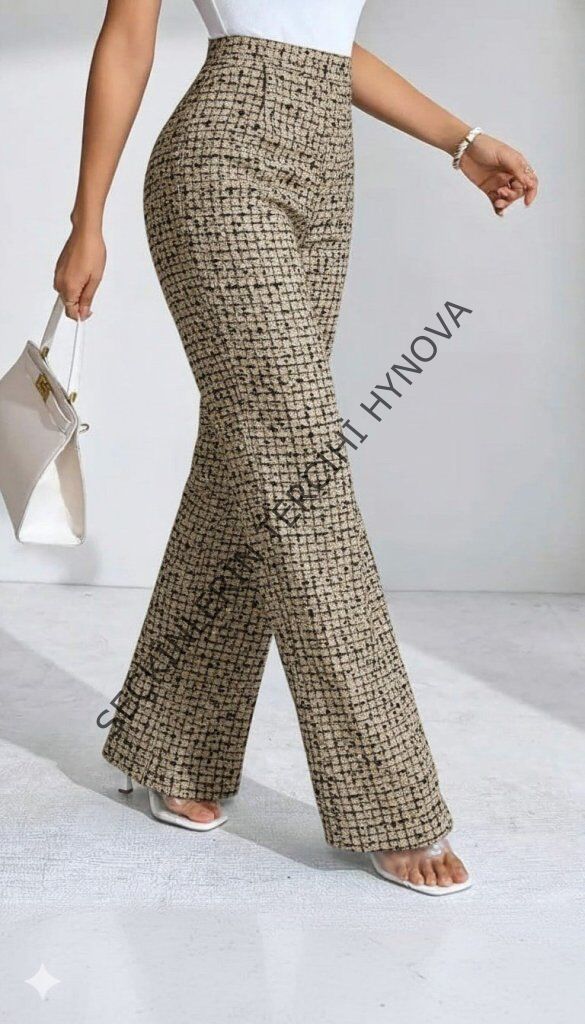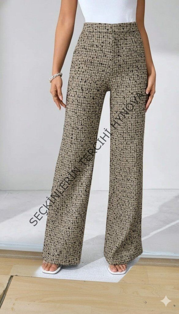 Kadın Yüksek Bel Paçaya Doğru Geniş Dokuma Pantolon