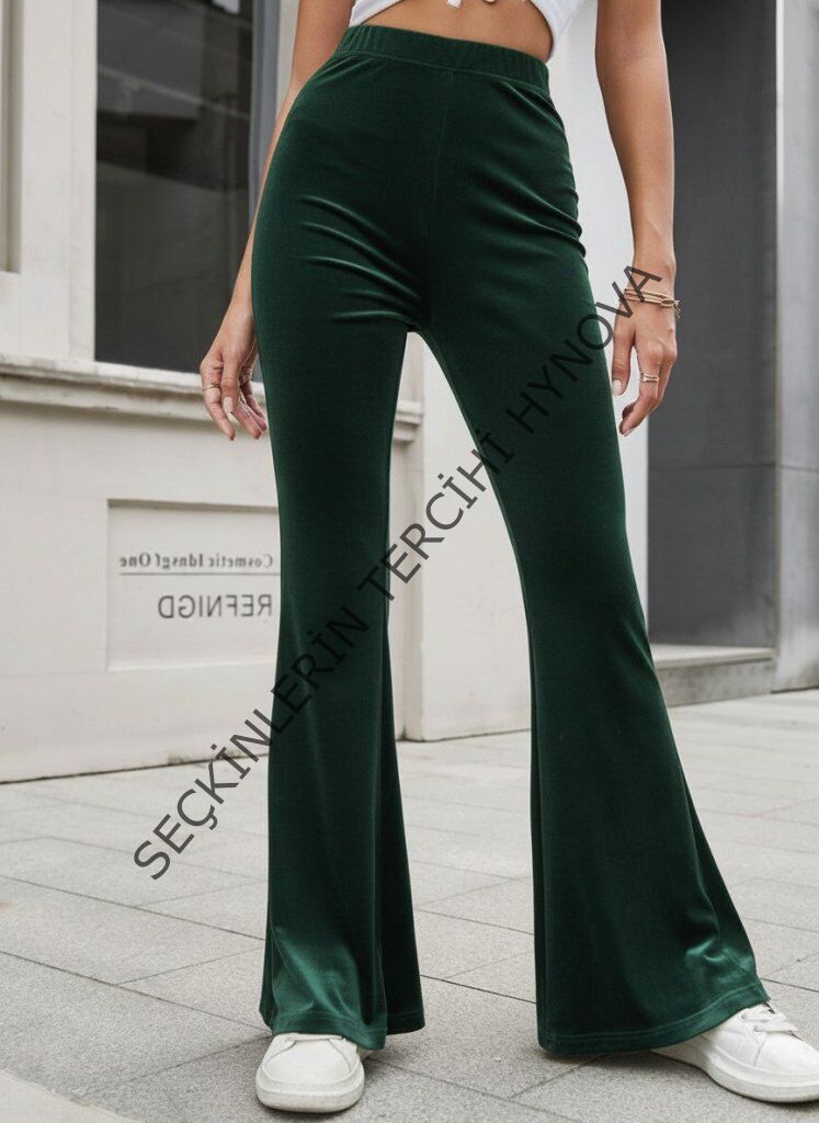 Kadın Yüksek Bel Paçaya Doğru Genişleyen Kadife Pantolon