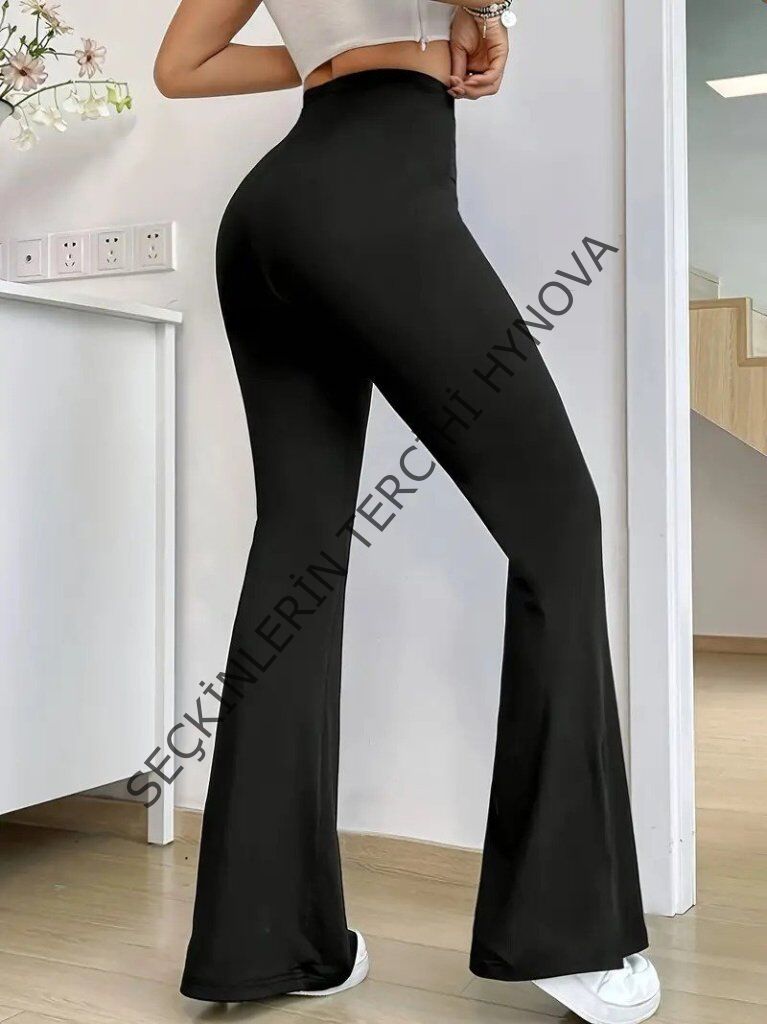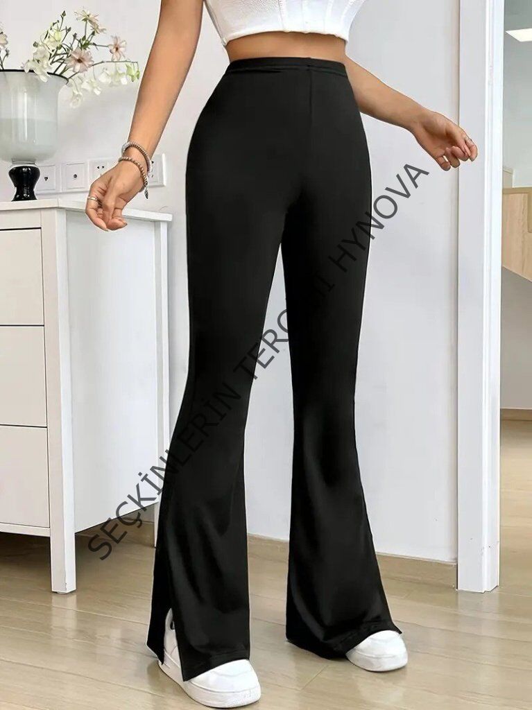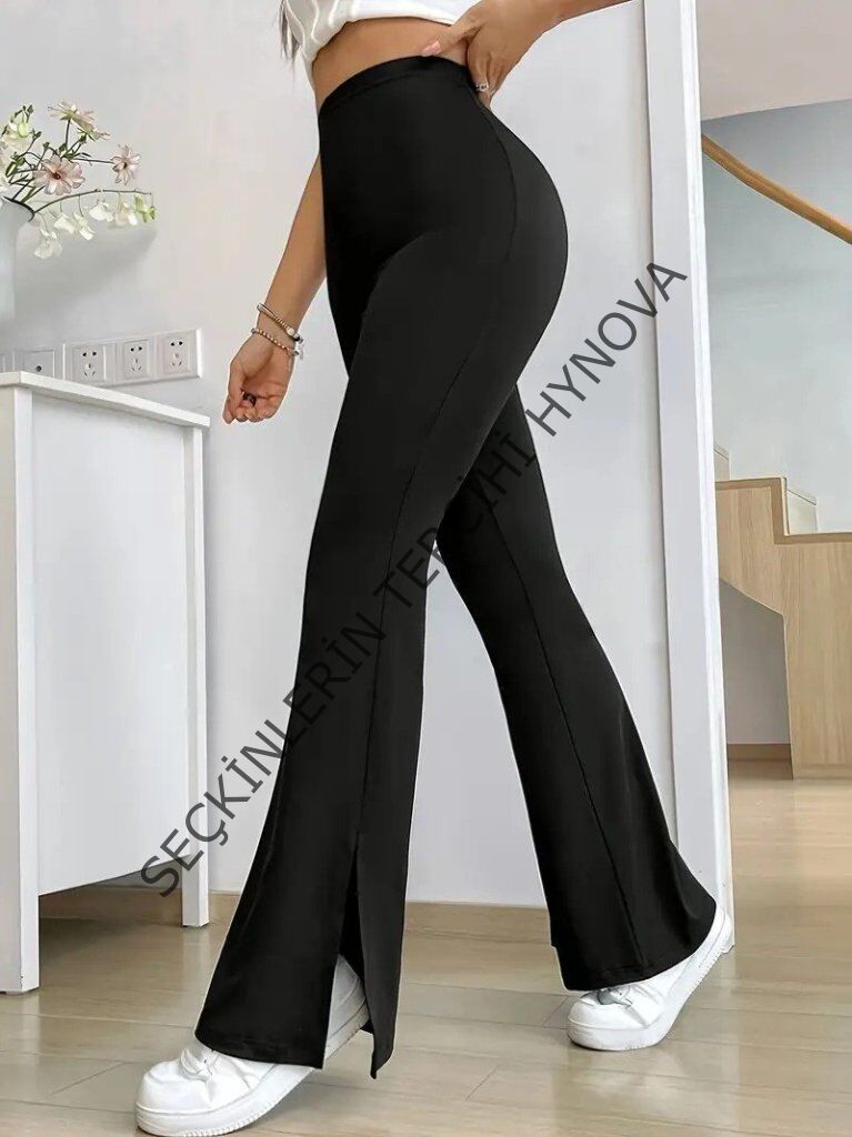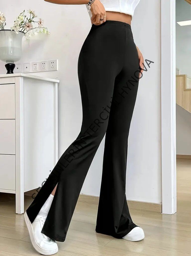 Kadın Yüksek Bel Paçaya Doğru Genişleyen Yandan Yırtmaçlı Dalgıç Pantolon