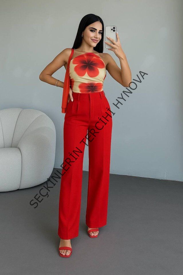 Kadın Yüksek Bel Plise Detay Bol Paça Pantolon