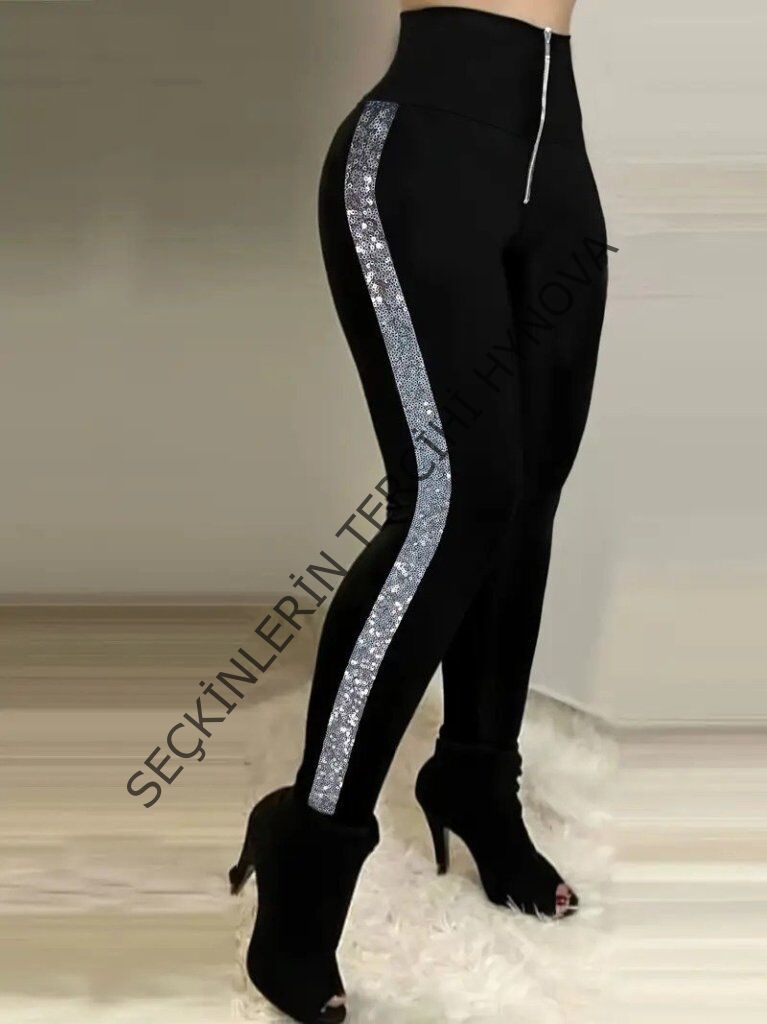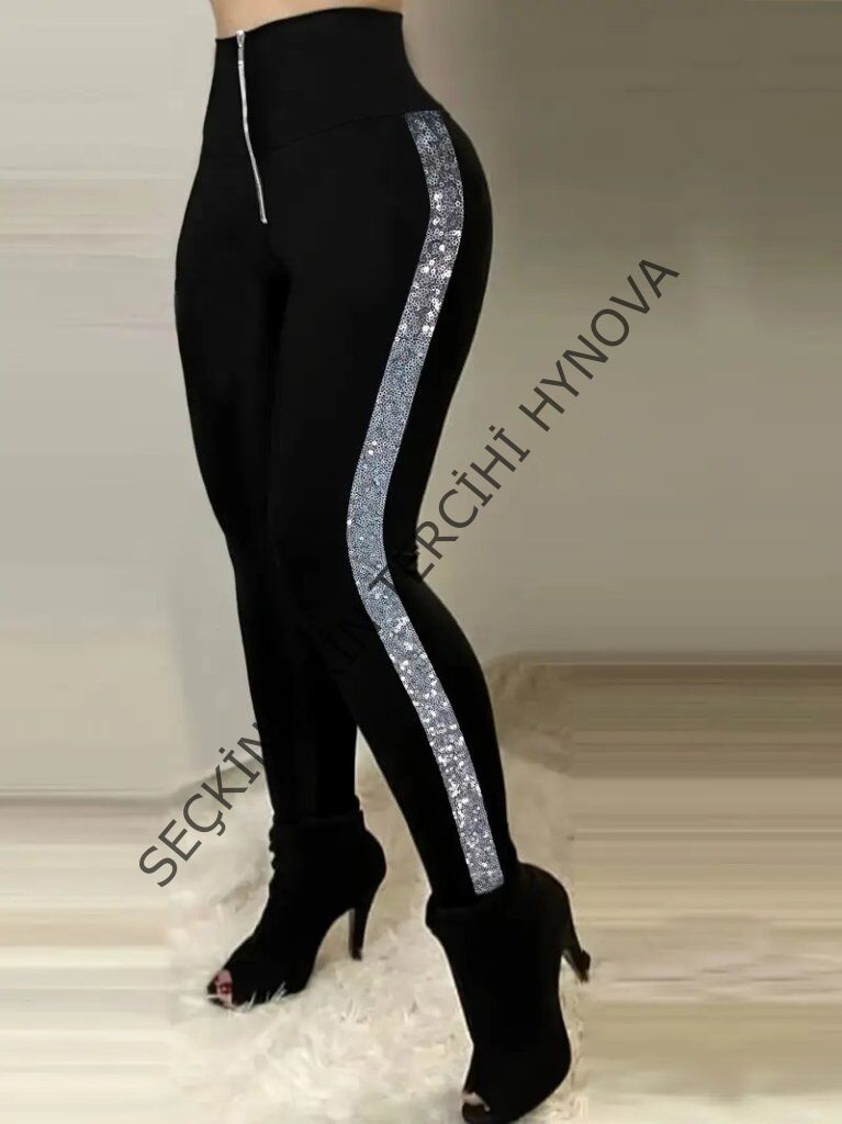 Kadın Yüksek Bel Yan şerit Detaylı Dalgıç Tayt