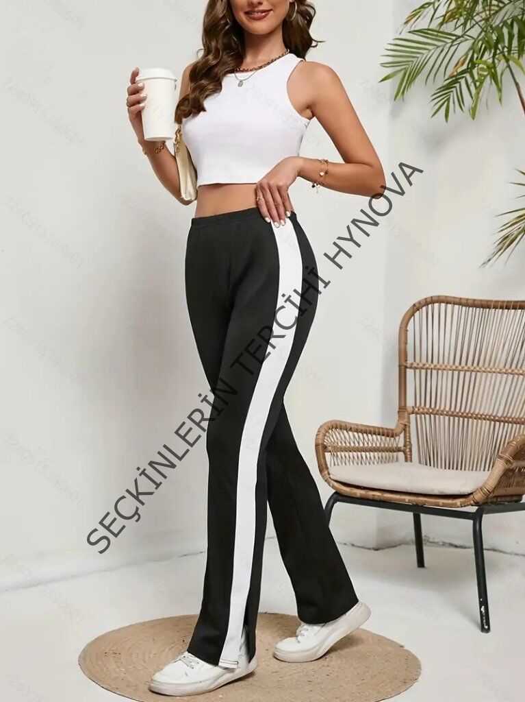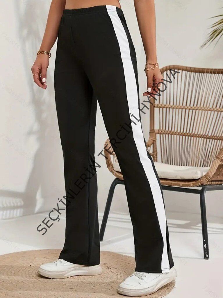 Kadın Yüksek Bel Yan şerit Detaylı Yırtmaçlı Viskon Iki Iplik Pantolon