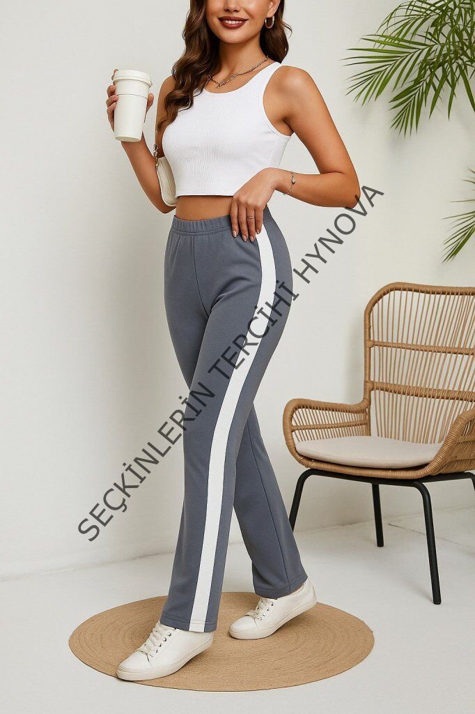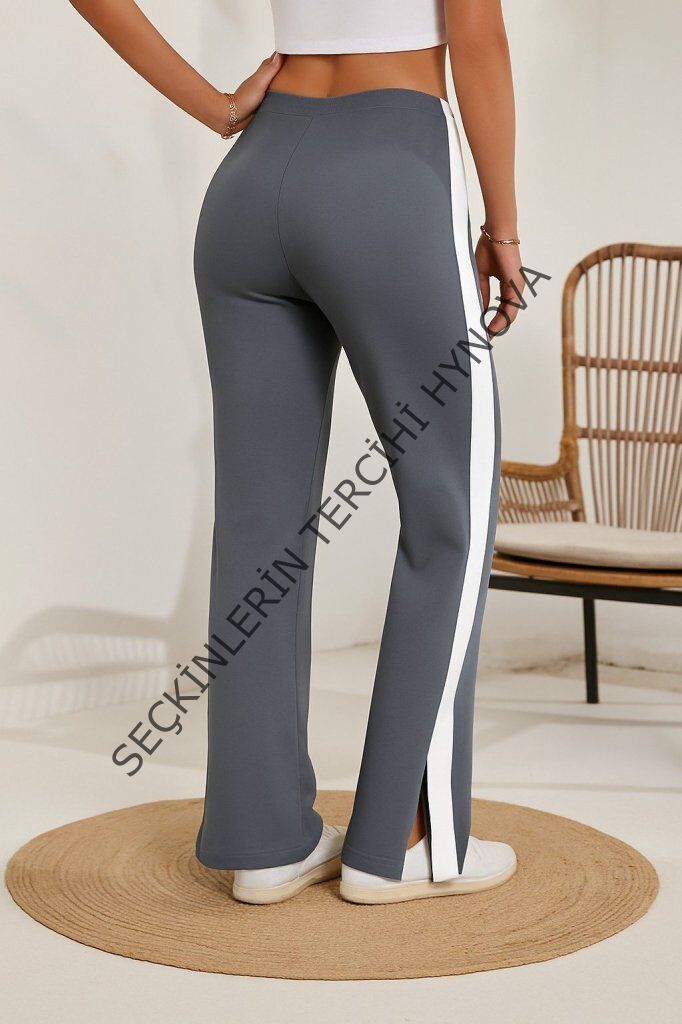 Kadın Yüksek Bel Yan şerit Detaylı Yırtmaçlı Viskon Iki Iplik Pantolon