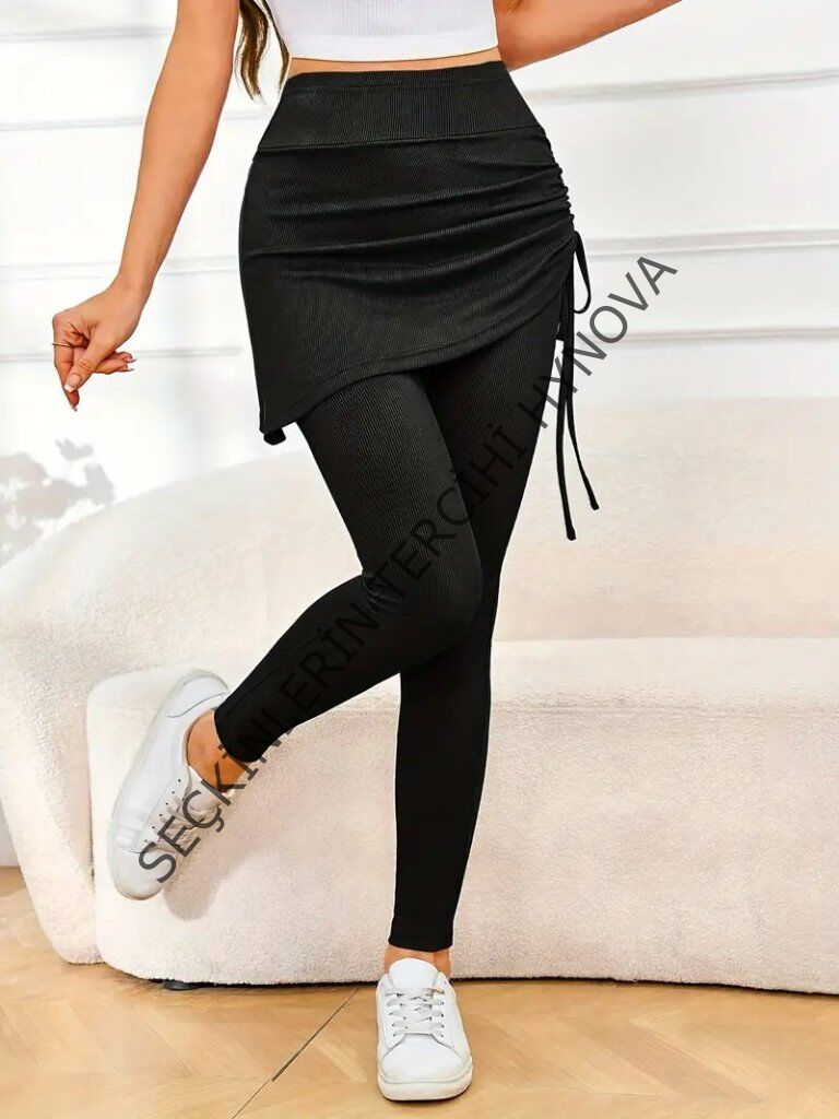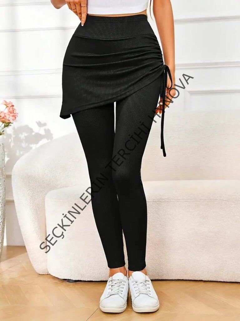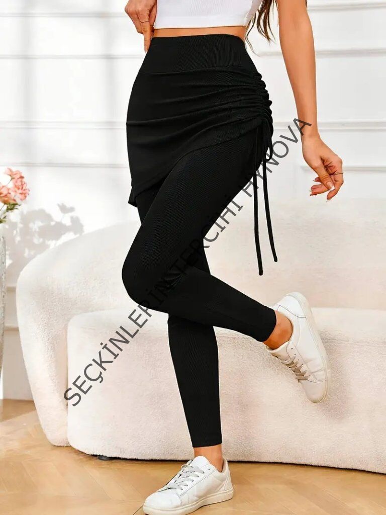 Kadın Yüksek Bel Yandan Büzgülü Alttan Uzun Kaşkorse Tayt Etek