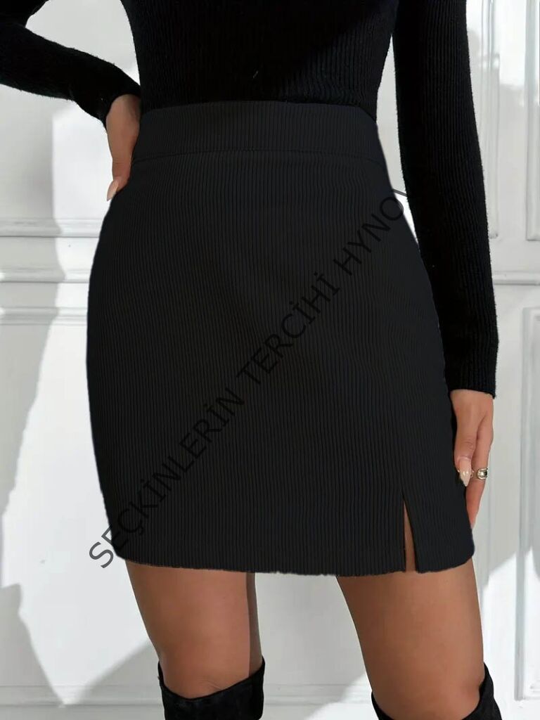 Kadın Yüksek Bel Yandan Yırtmaçlı Kısa Kadife Etek