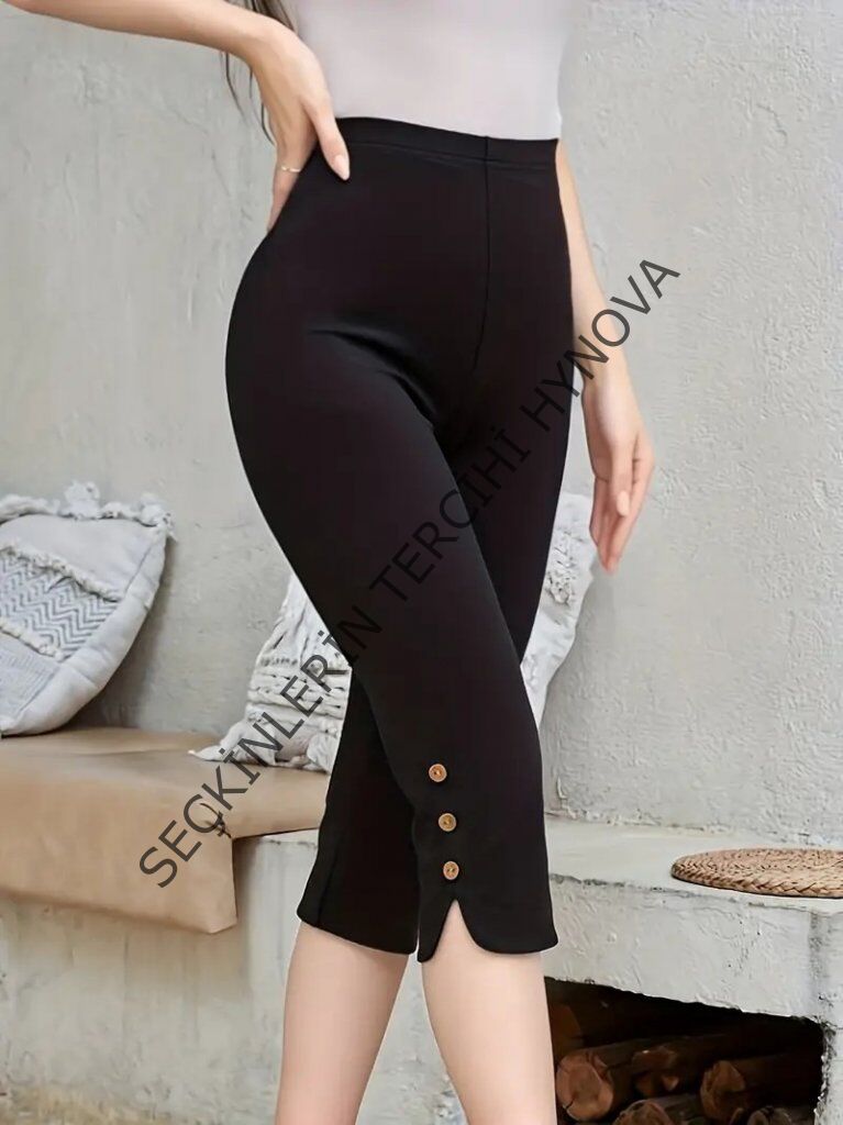 Kadın Yüksek Bel Yanlardan Düğmeli Kısa Ithal Krep Pantolon