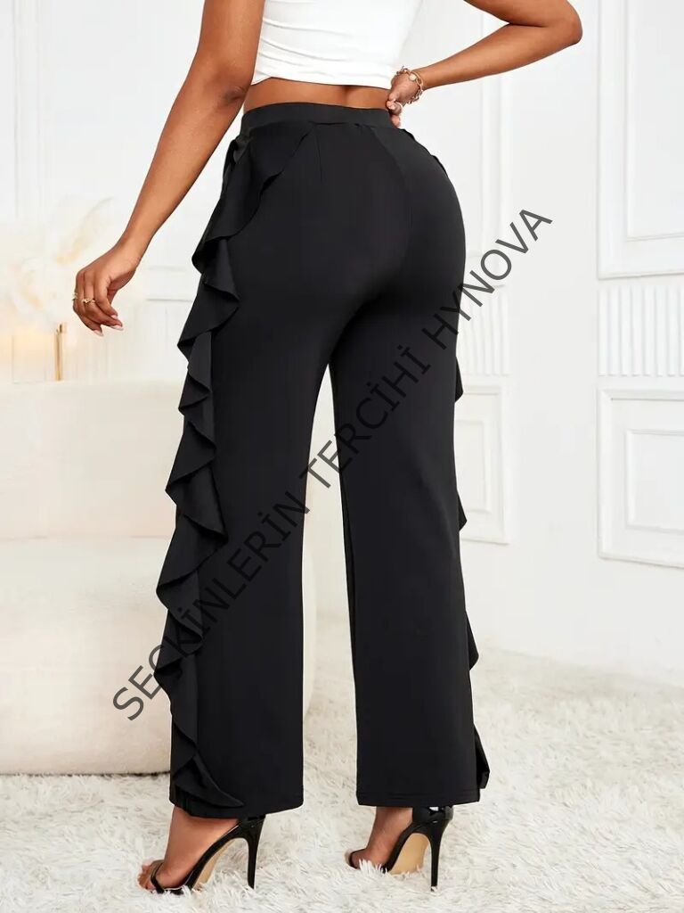 Kadın Yüksek Bel Yanları Volanlı Cepli Sandy Pantolon