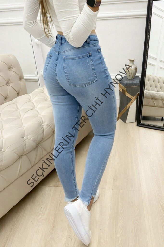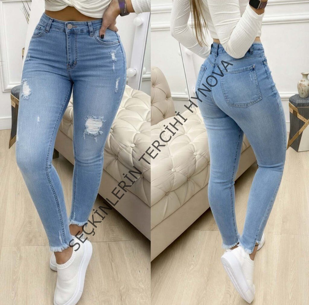 Kadın Yüksek Bel Yırtık Desenli Skınny Kot Pantolon