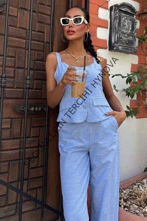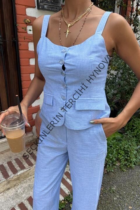 Kalın Askılı Bluz Pantolon Keten Takım 10187