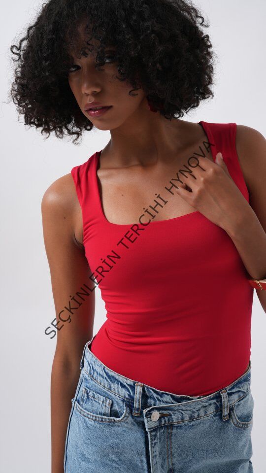Kare Yaka Kalın Askılı Bodysuit
