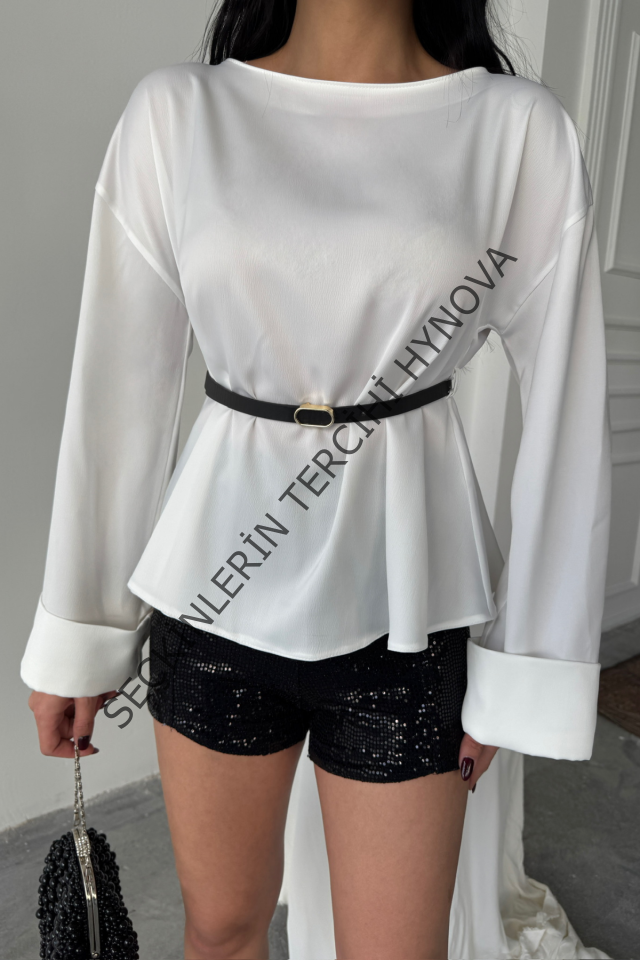 KEMER DETAYLI SATEN BLUZ - Beyaz