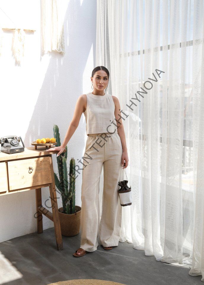 Keten Bluz Ve Pantolon İki̇li̇ Takim