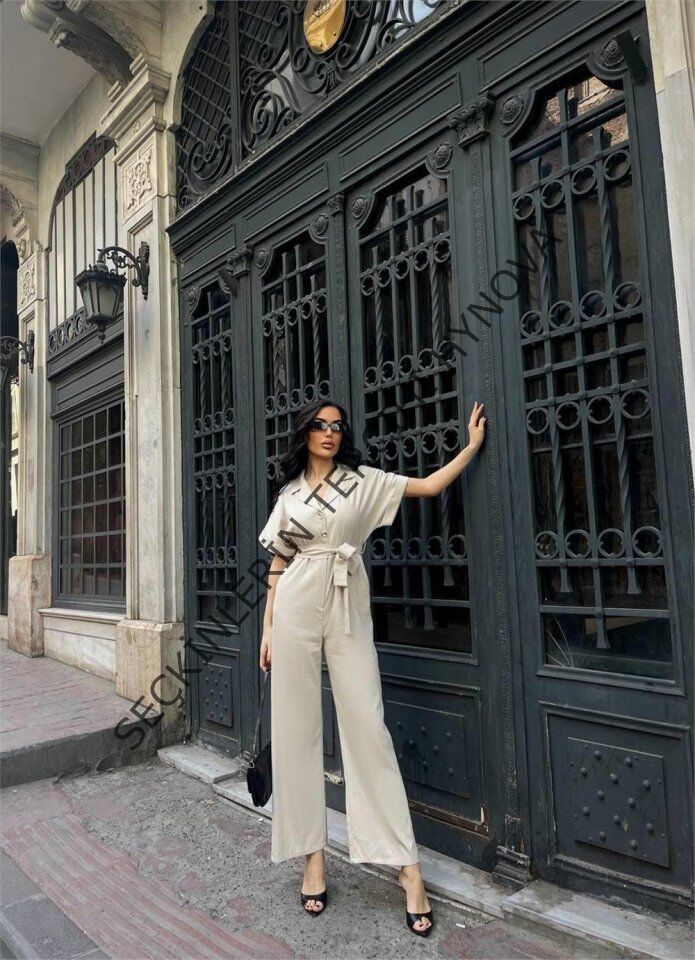 KETEN TULUM BEL BAĞLAMA DETAYLI - Krem