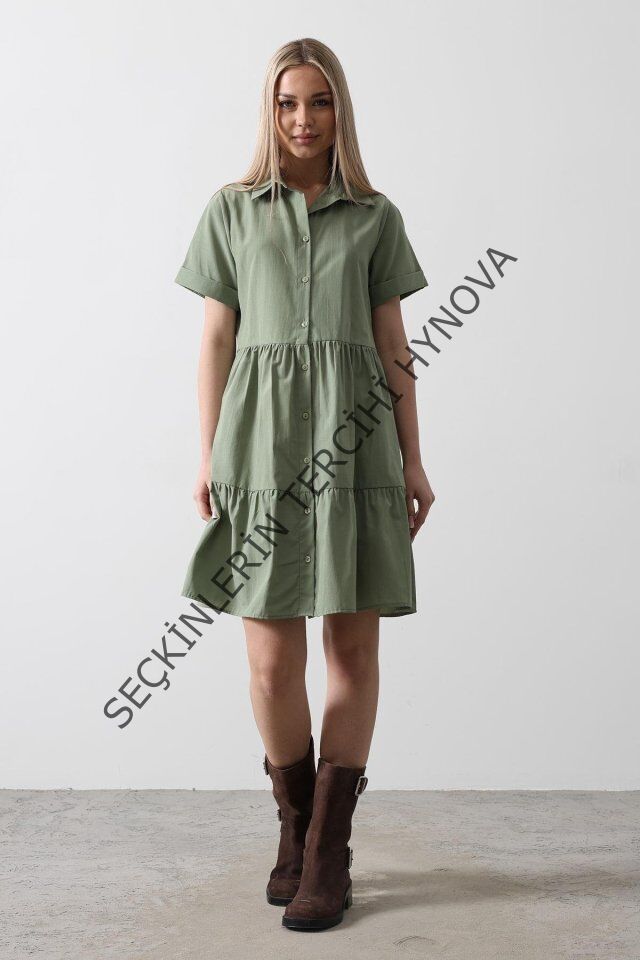 Kısa Kol Düğmeli Elbise - Haki