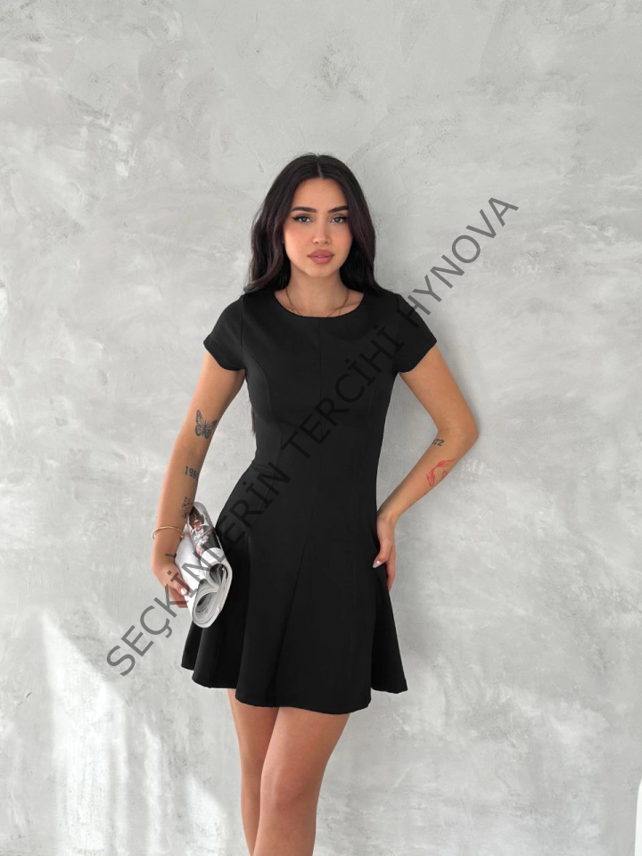 Kısa Kollu Mini Elbise - Siyah