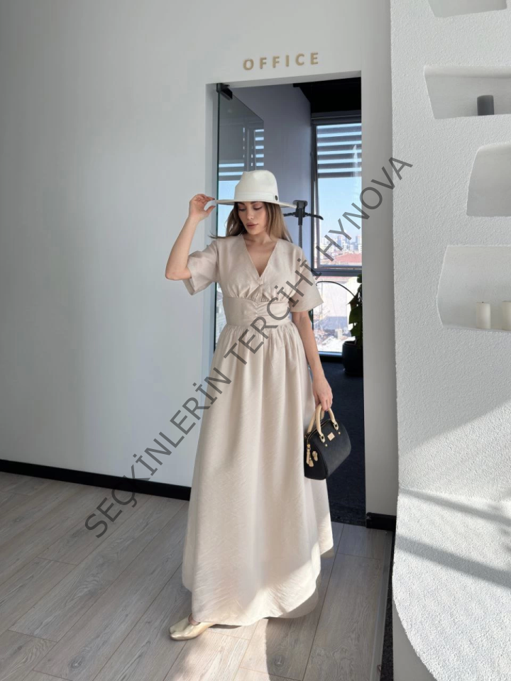 Kısa Kollu Uzun Elbise - Kırık Beyaz
