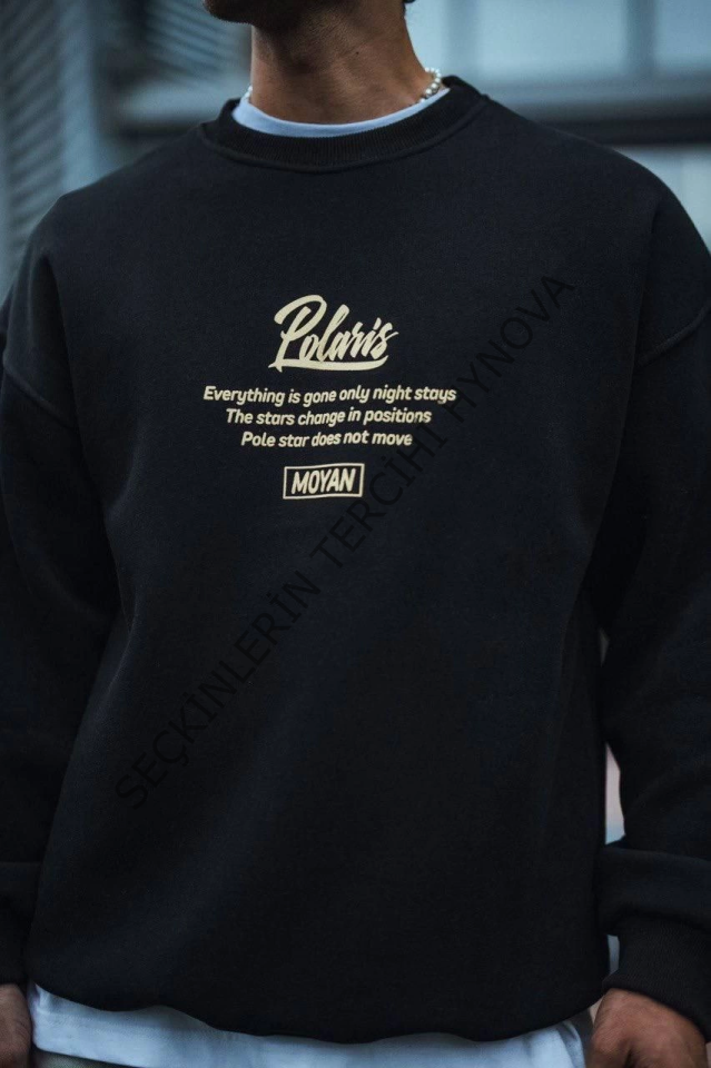 Kışlık Bisiklet Yaka Ön Ve Arka Baskılı SweatShirt - Siyah