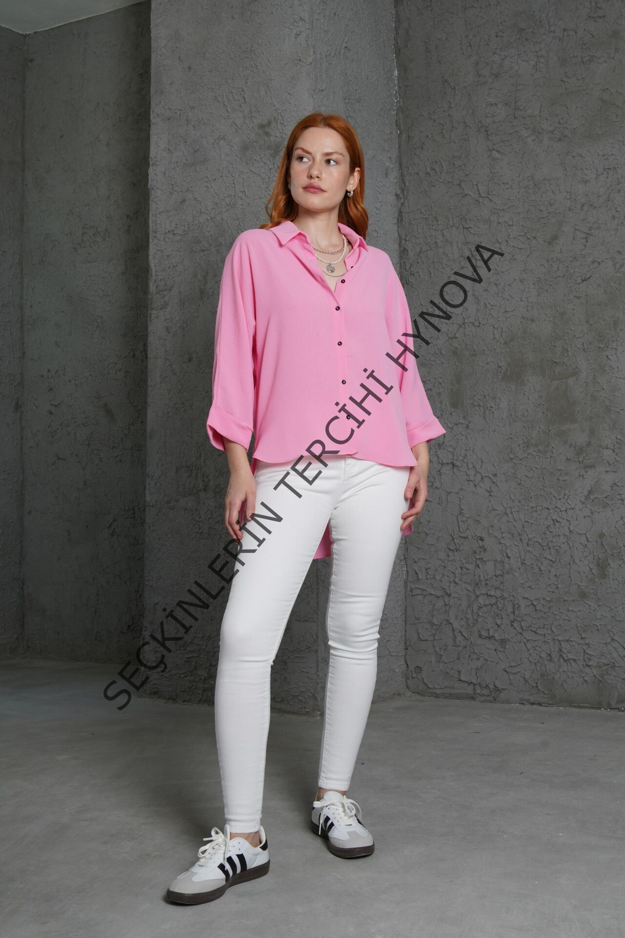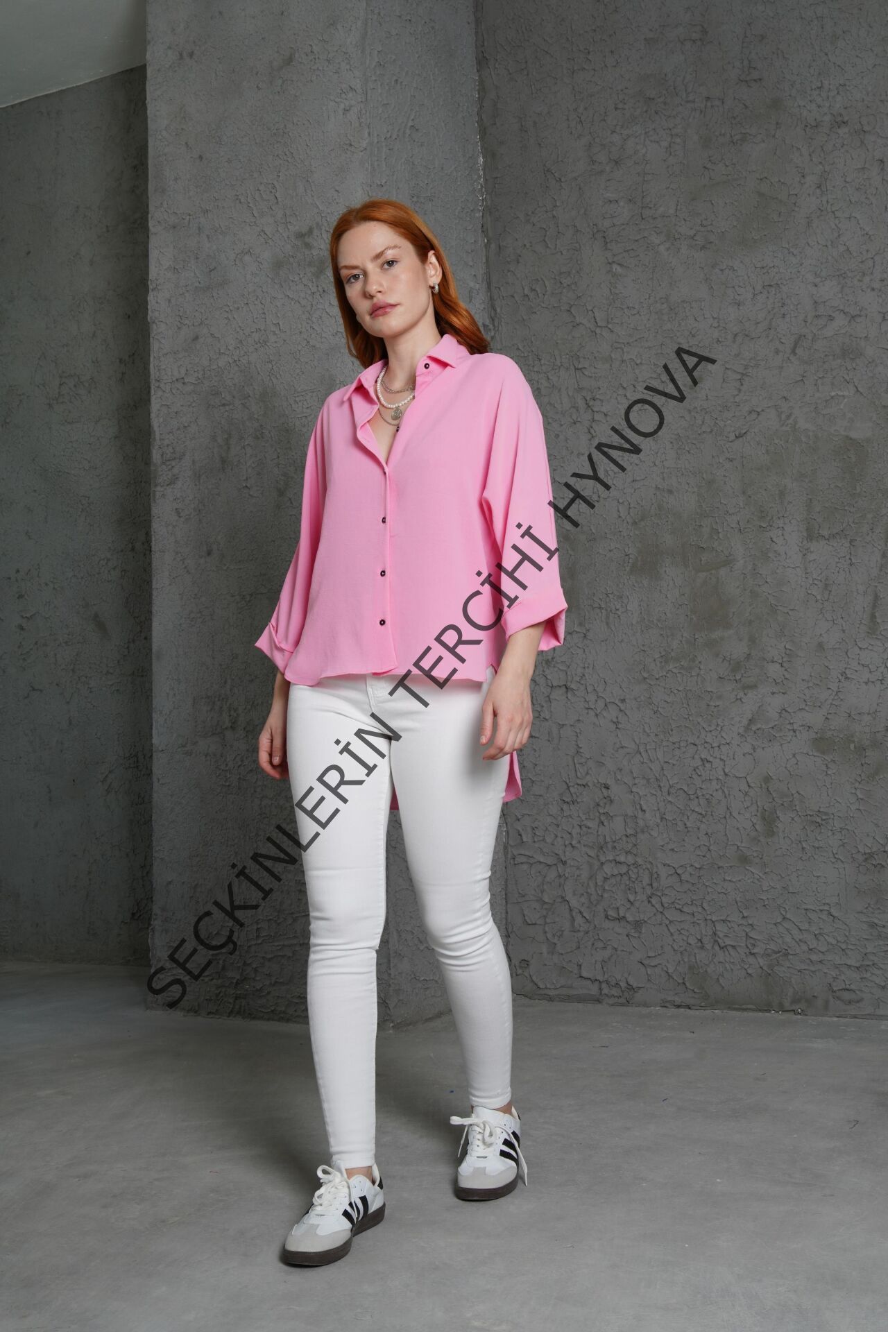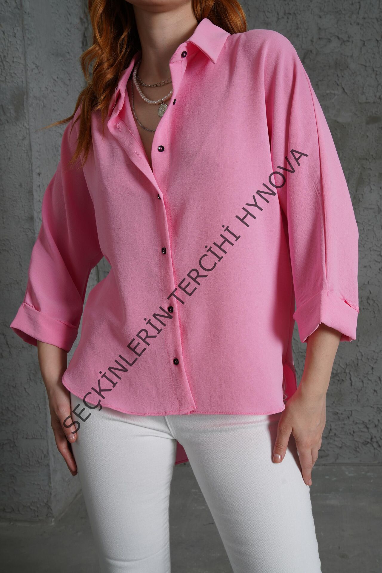 Kol Katlama Detaylı Pembe Gömlek