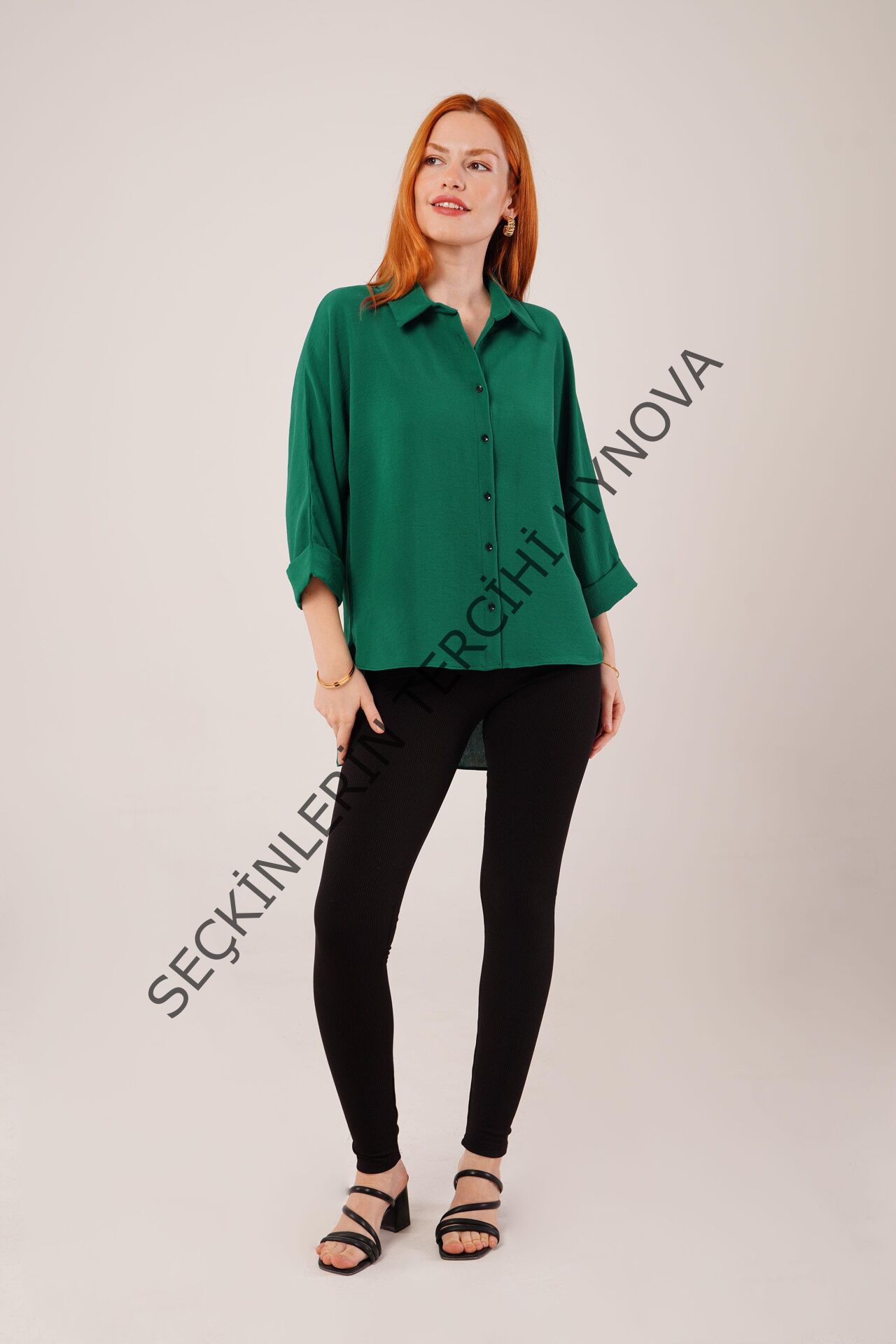Kol Katlama Detaylı Zümrüt Yeşili Gömlek