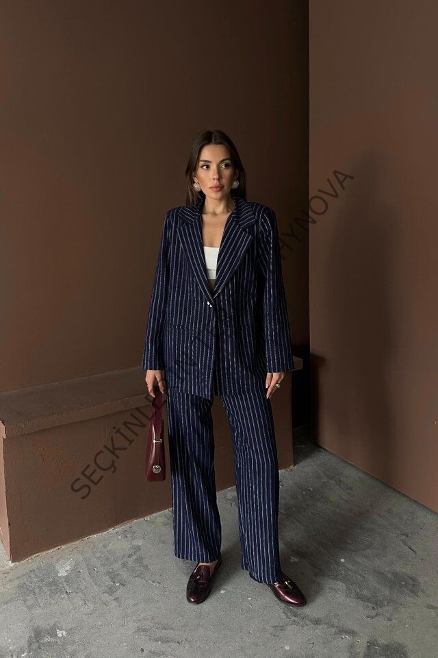 Lacivert Çizgili Ceket Ve Pantolon Takım