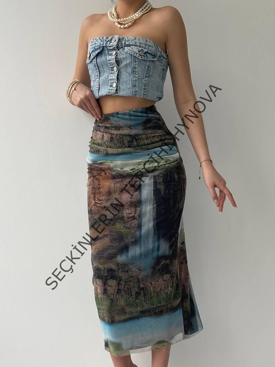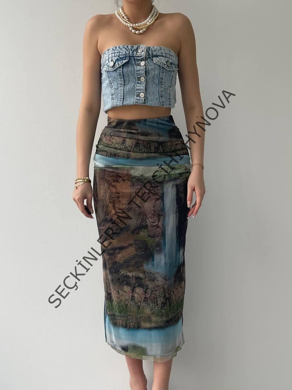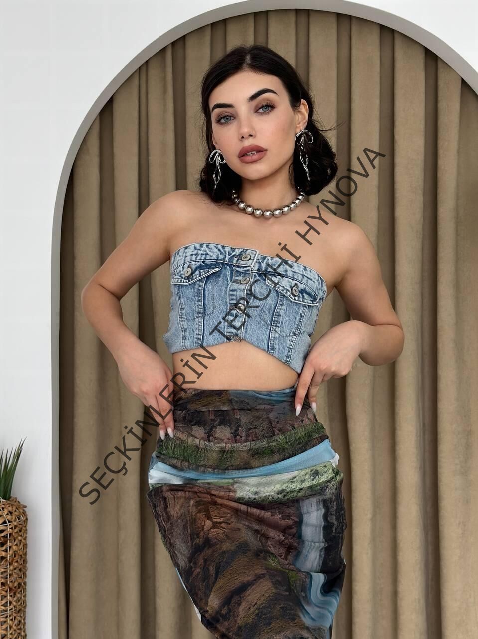 Modelin Ölçüleri: Boy:165, Kg:55, Göğüs:90, Bel:72, Kalça: 100