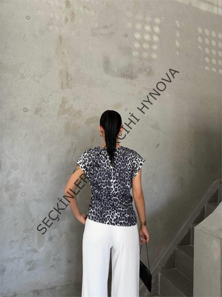 LEOPAR DESEN YANDAN BAĞLAMA DETAYLI BLUZ - Gri