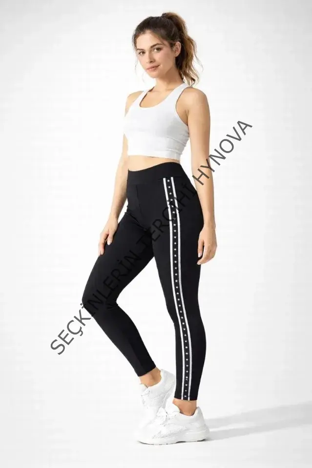 Likralı Yan Yıldız Şeritli Detaylı Tayt - Siyah
