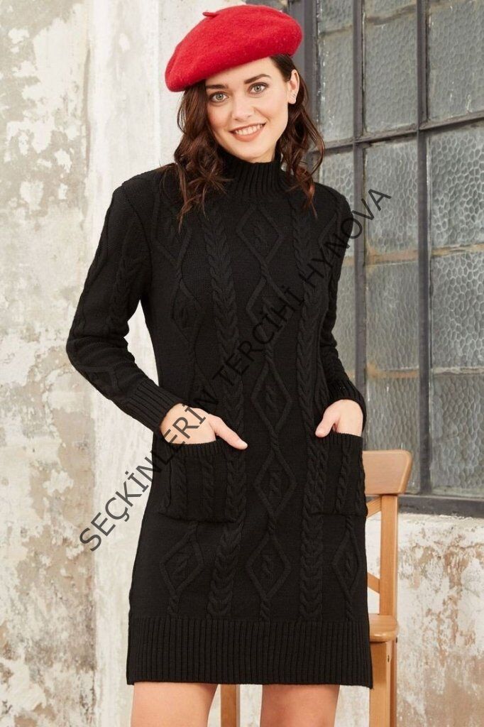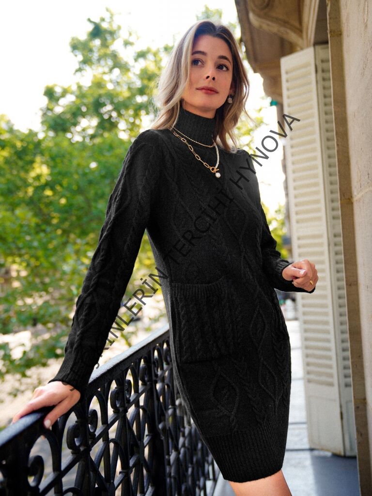 Loren Yünlü Motifli Midi Boy Triko Elbise