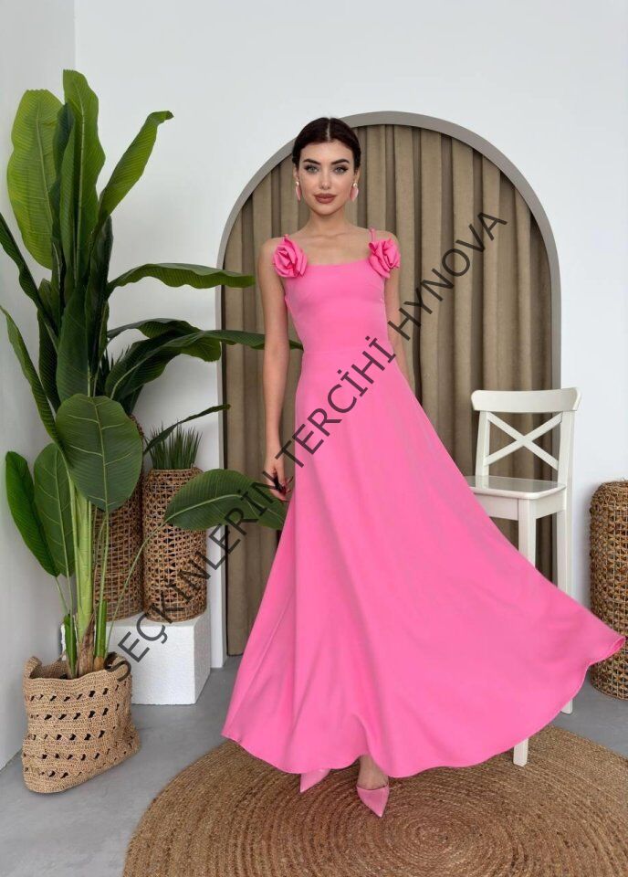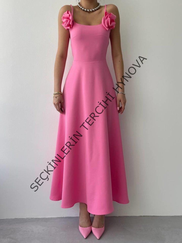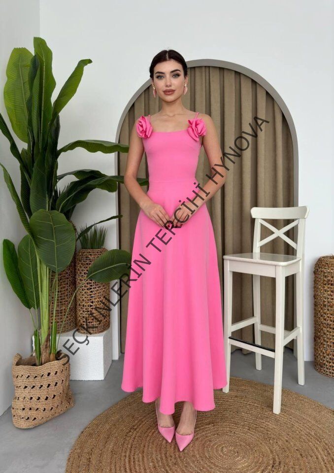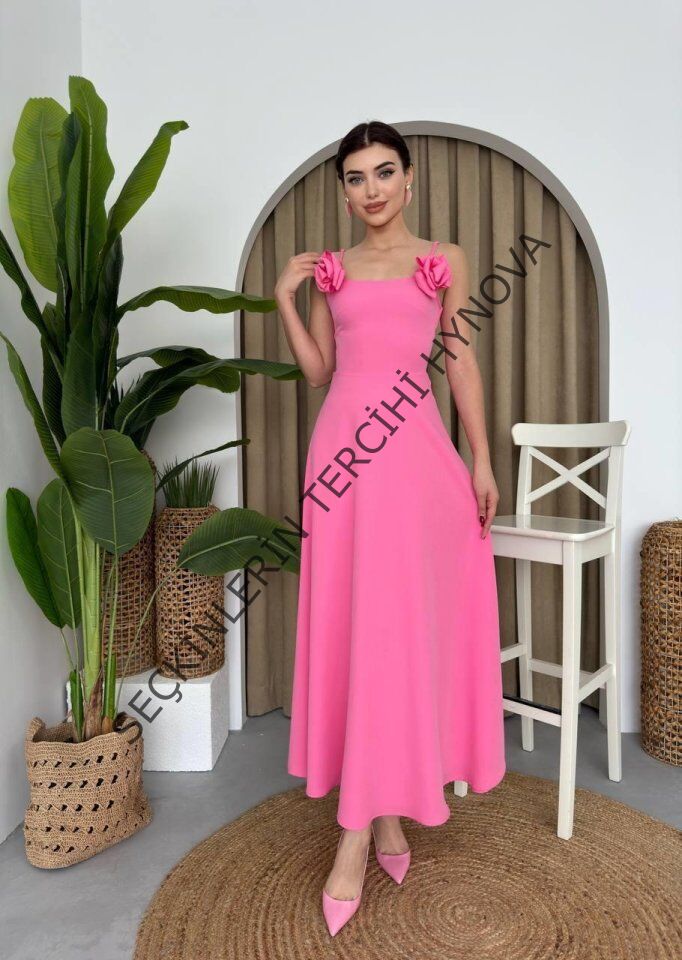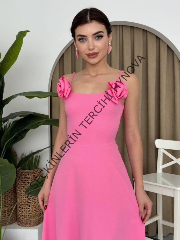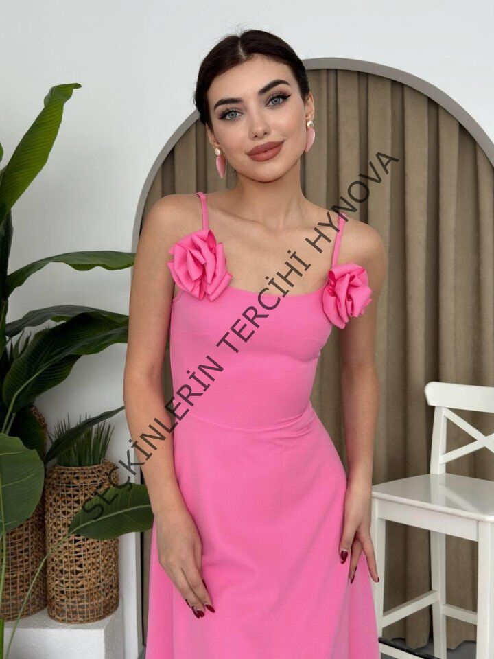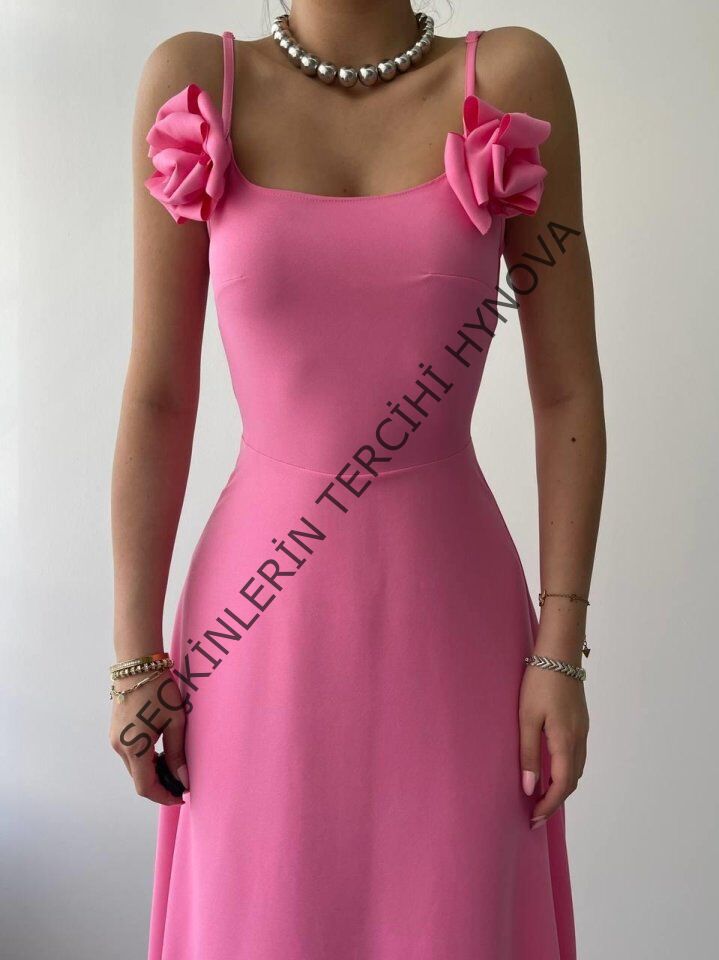 Matilda Gül İp Askılı Elbise