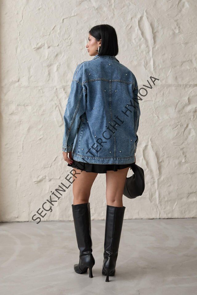 Mavi Taşlı Kot Ceket