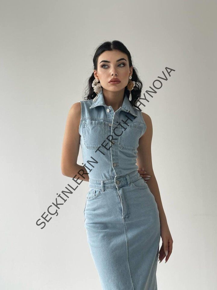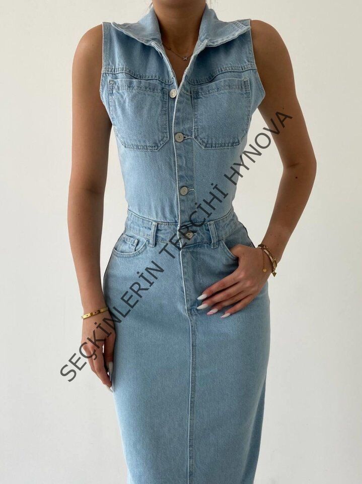 Meldia Jean Sıfır Kollu Elbise