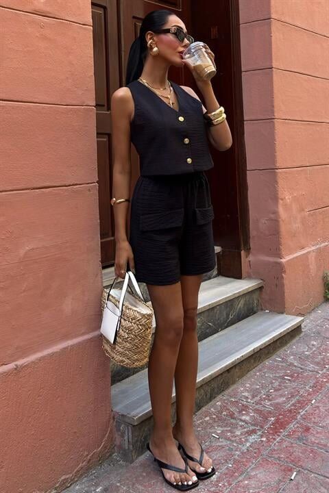 Mini Yelekli Şortlu Keten Takım 10176-08
