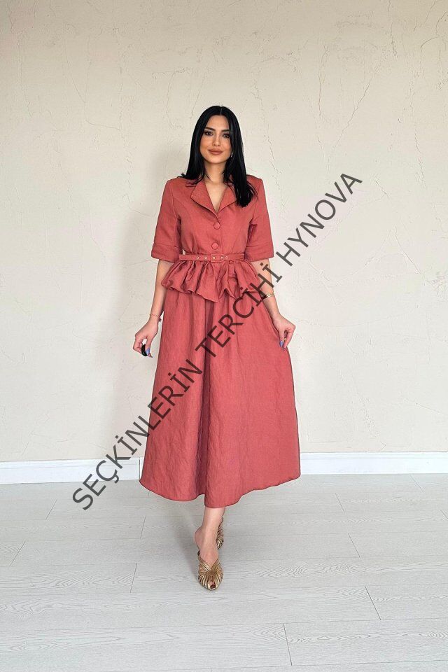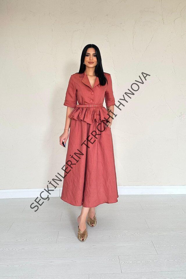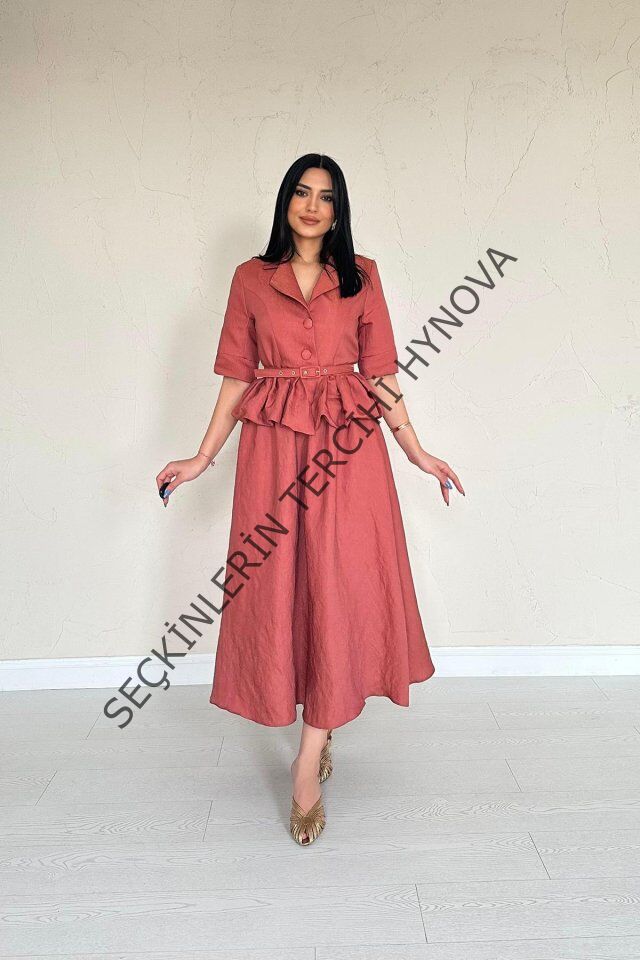 Moccah İnce Kemerli Fırfırlı Ceket Ve Büzgülü Etek Takım