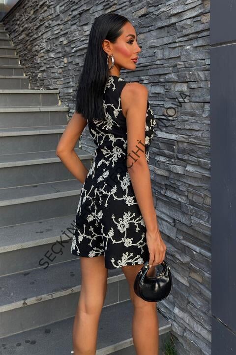 Nakışlı Yelek Şort Etekli Keten Takım 10226-08