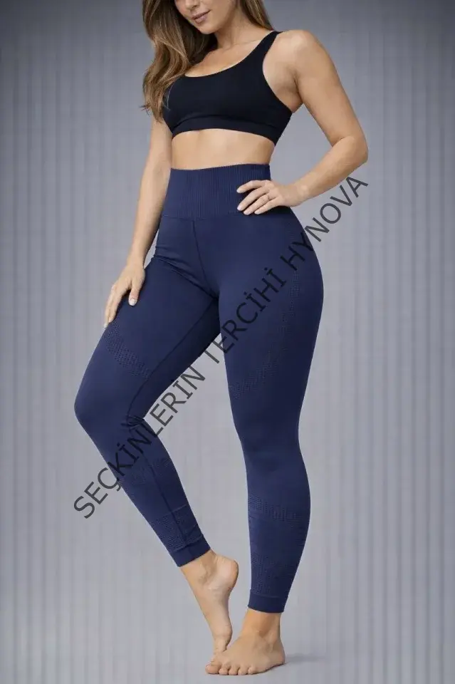 Nonofit Yüksek Bel Full Extra Toparlayıcı Likralı Ön Arka Ve Bilek Desenli Tayt - Lacivert