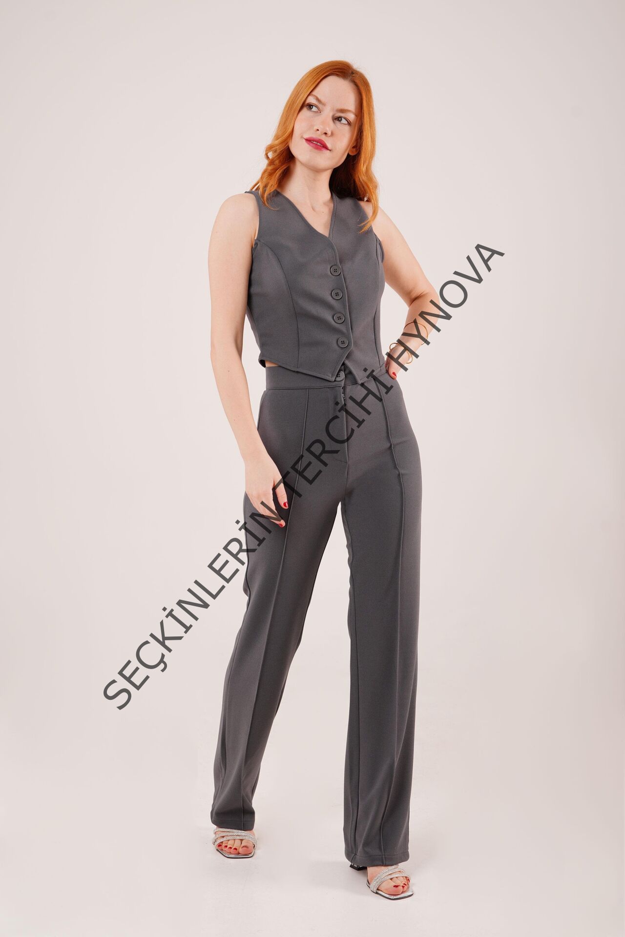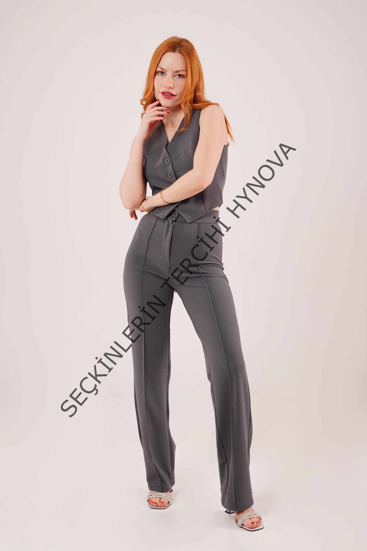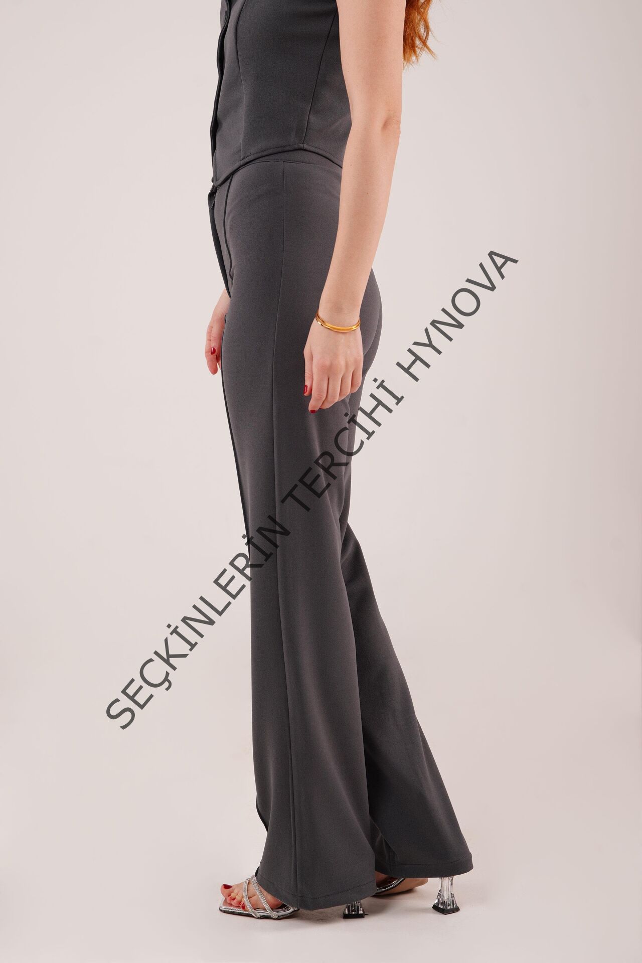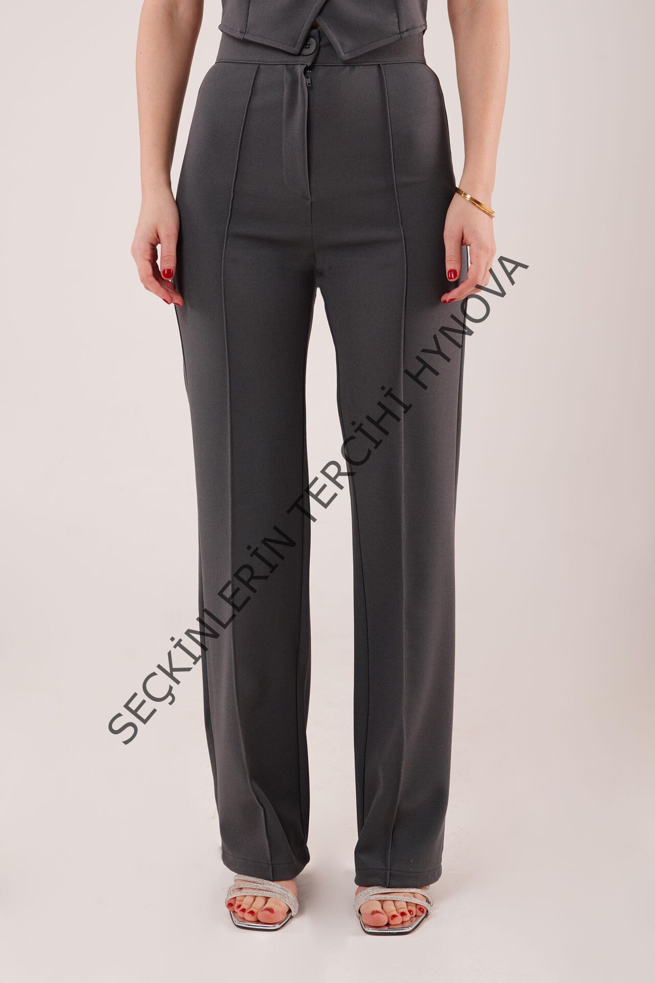 Ön Dikiş Detaylı Tek Düğme Gri Pantolon
