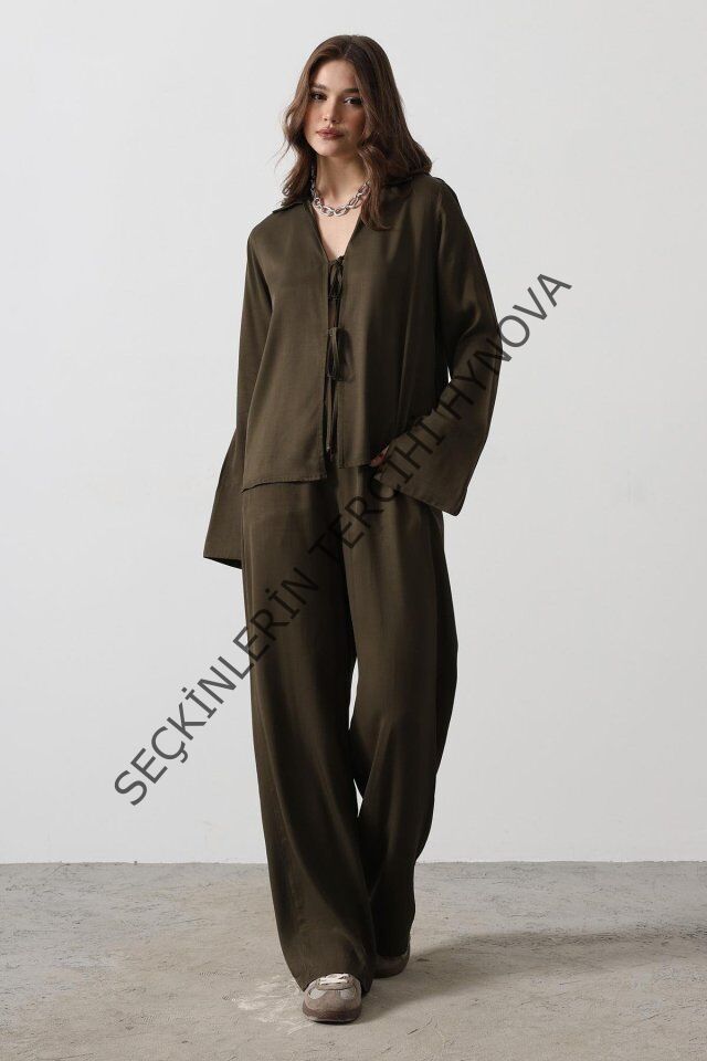 Önden Biyeli Bluz Ve Pantolon Takım - Haki